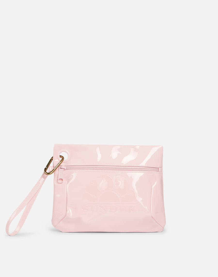 Pochette de plage imperméable avec mousqueton et boucle à main, à emporter avec vous comme et où vous voulez. Une pochette polyvalente que vous pouvez utiliser seule avec la boucle à main ou attacher aux sacs et aux sacs à dos grâce au mousqueton pratique. L'effet brillant et les surpiqûres sur le devant donnent à la pochette une touche de caractère indispensable. Elle est également imperméable, pour protéger vos objets les plus importants.