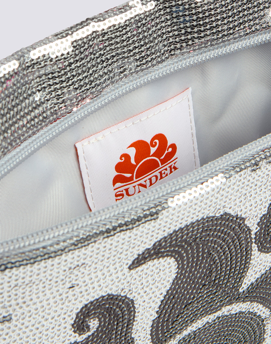 Pochette raffinée à paillettes pour avoir toujours le nécessaire avec vous.