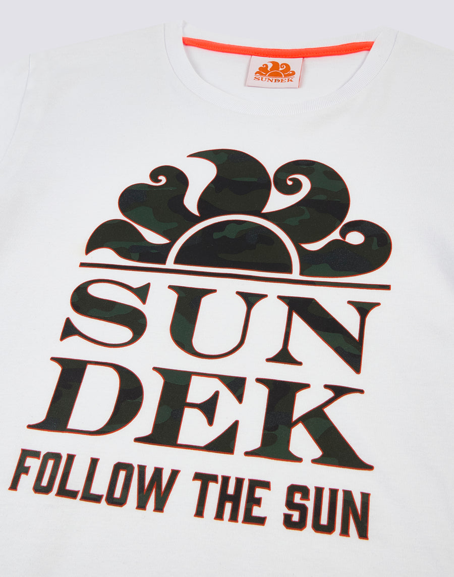 Le logo Sundek Follow the sun se fait remarquer dans une version camouflage sur ce t-shirt pour garçon polyvalent et confortable. À porter en toute occasion pour ajouter une touche de détermination aux looks des plus petits.