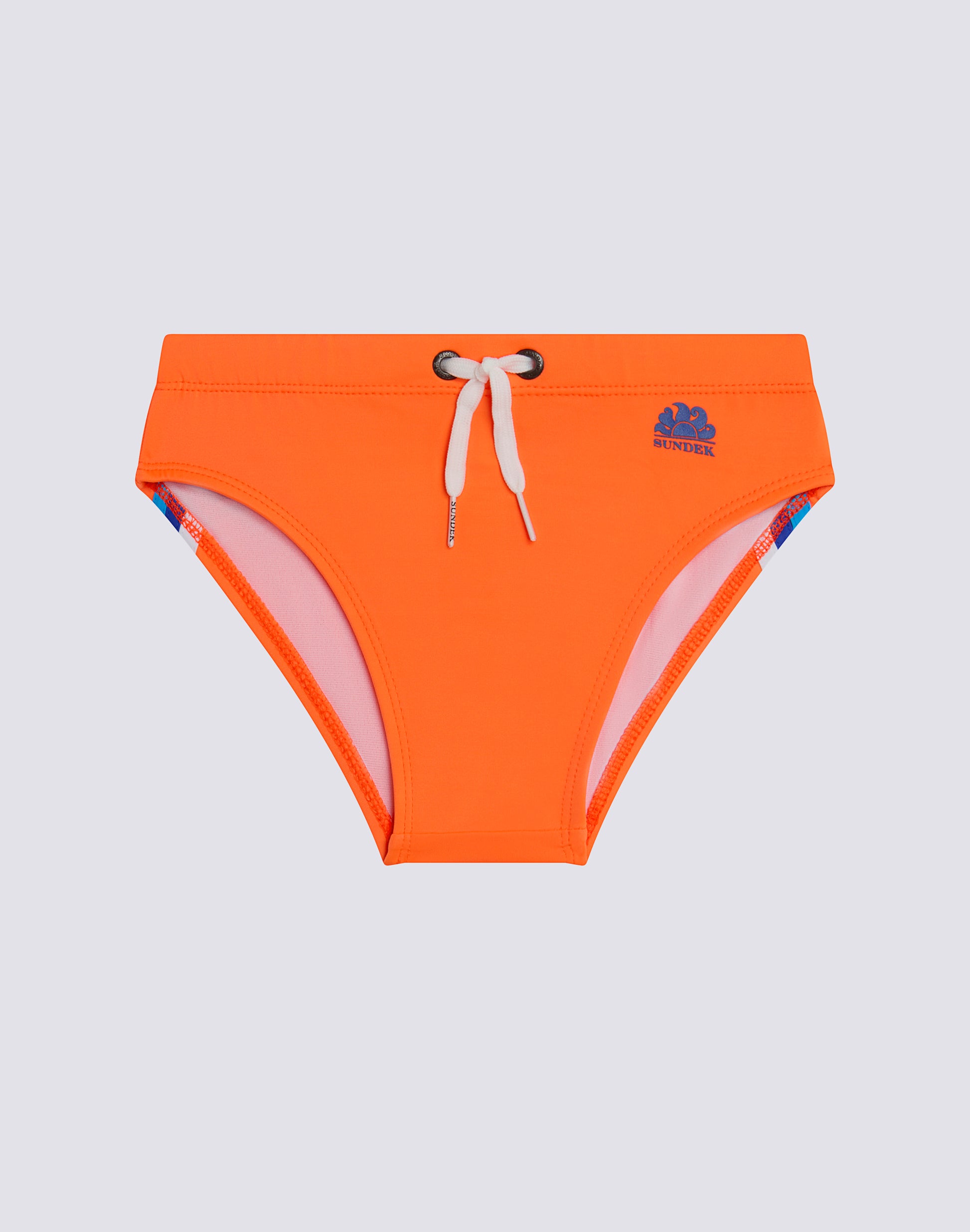 Slip de bain garçon avec détails arc-en-ciel au dos, cordon de serrage et taille élastique.