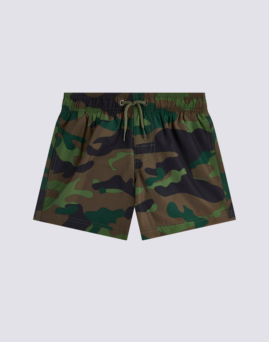 Couleur intense et tissu ultra-confortable à séchage rapide pour ce short de bain pour enfant à motif camouflage. Un modèle qui accompagnera votre enfant dans ses mille activités pendant les vacances, parfait pour bouger et jouer en toute liberté. Réalisé en polyester recyclé Repreve® et confectionné avec des coutures à trois aiguilles qui le rendent résistant dans le temps. À mettre dans la valise, année après année.