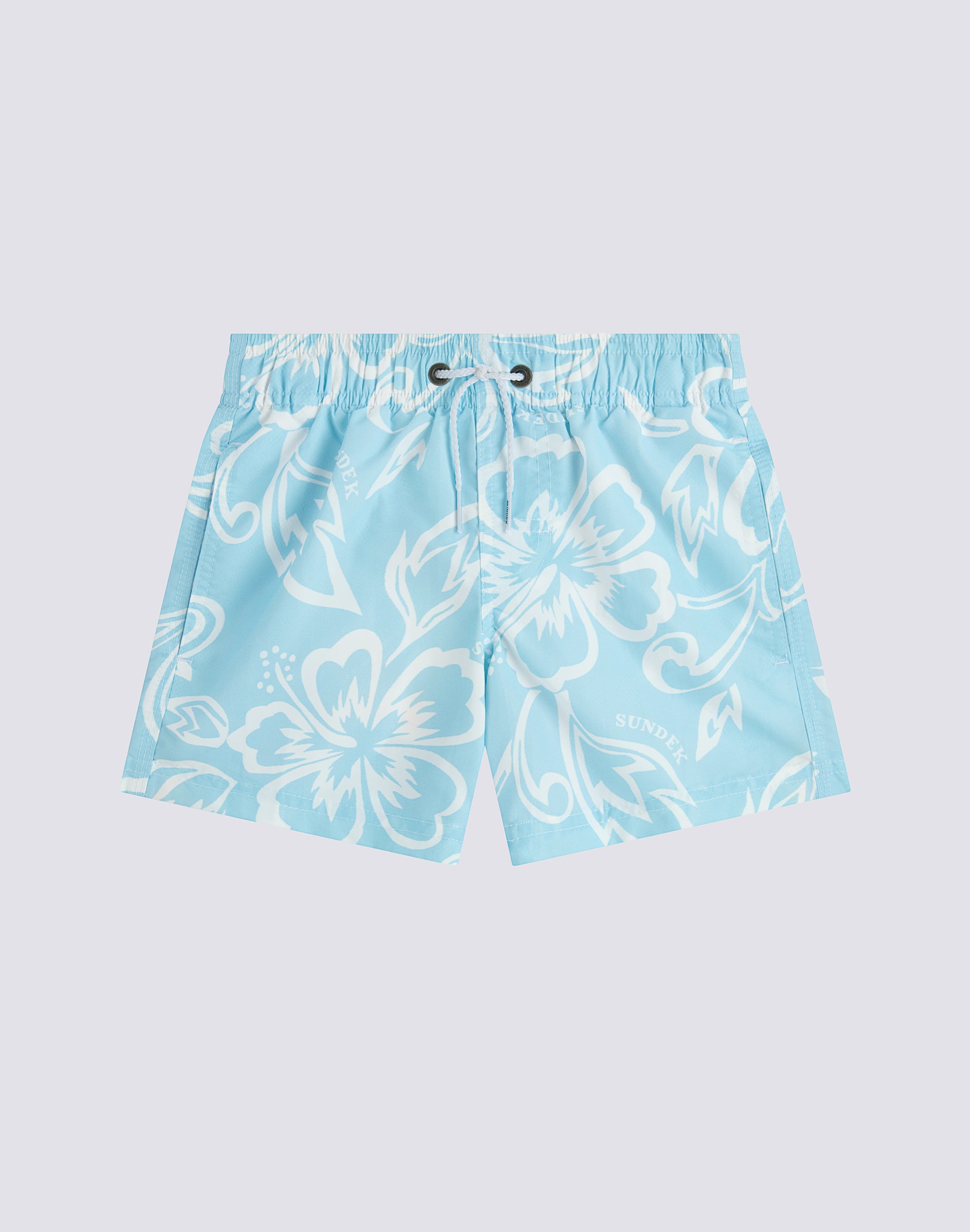 MAILLOT DE BAIN COURT POUR ENFANT AVEC TAILLE ÉLASTIQUE IMPRIMÉ ARCHIVE HIBISCUS SK23