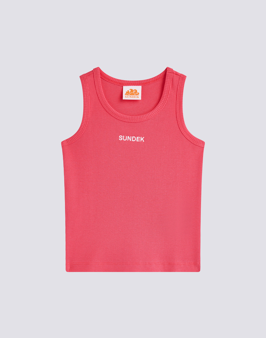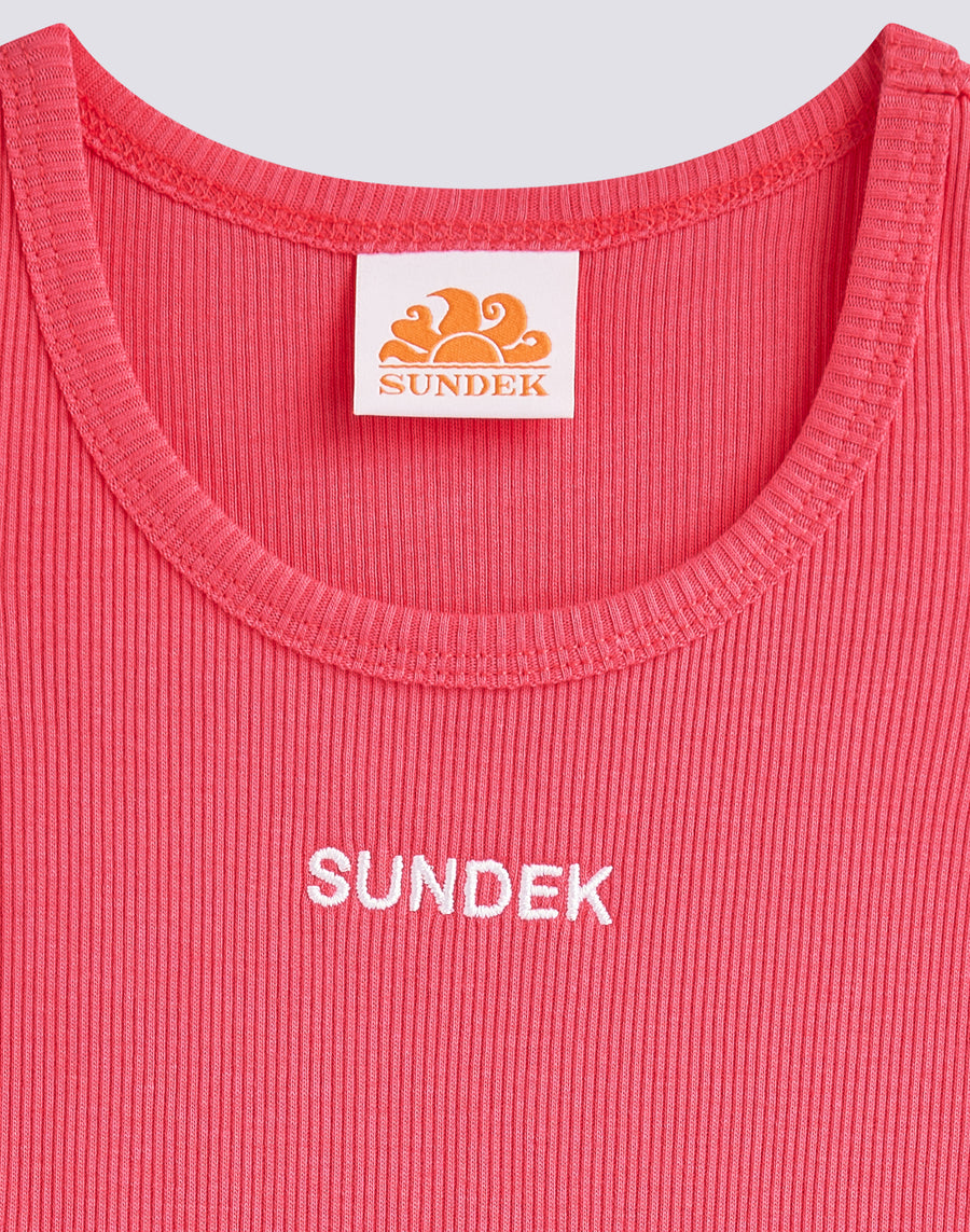Débardeur côtelé avec logo Sundek brodé sur le devant. Modèle fille identique au modèle adulte, pour créer un look matchy matchy avec maman !