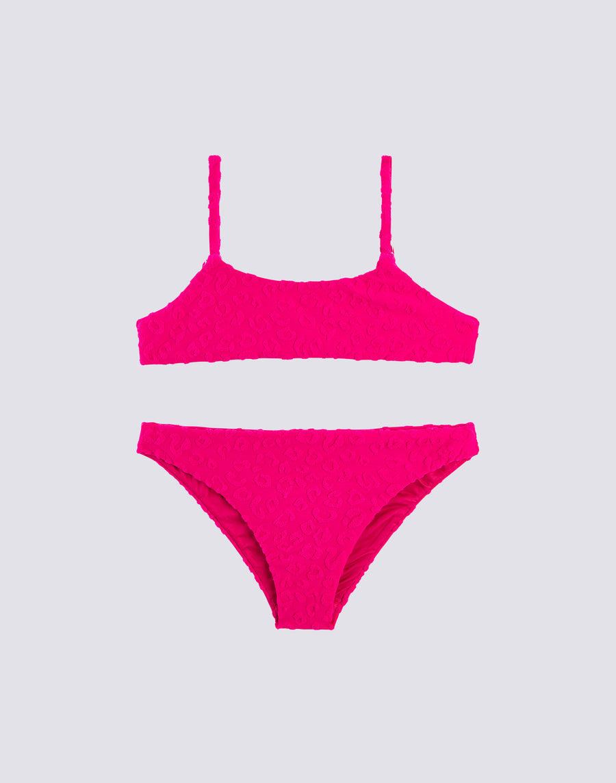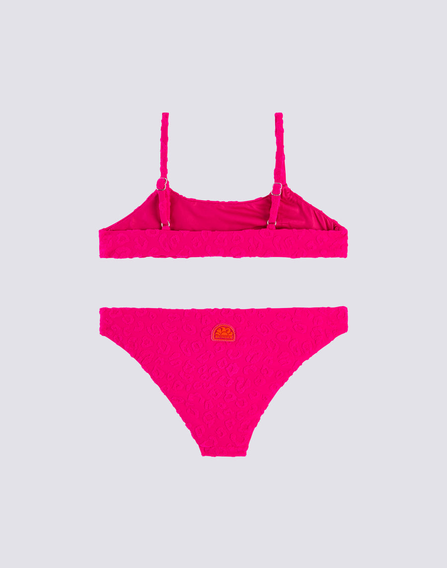 Laissez-vous inspirer par le magnifique maillot de bain bandeau pour fille avec sa culotte en éponge imprimé léopard. Fabriqué avec des matériaux de qualité, le haut bandeau offre un ajustement confortable et sécurisé pour un look unique et tendance. Parfait pour les journées à la plage ou à la piscine.