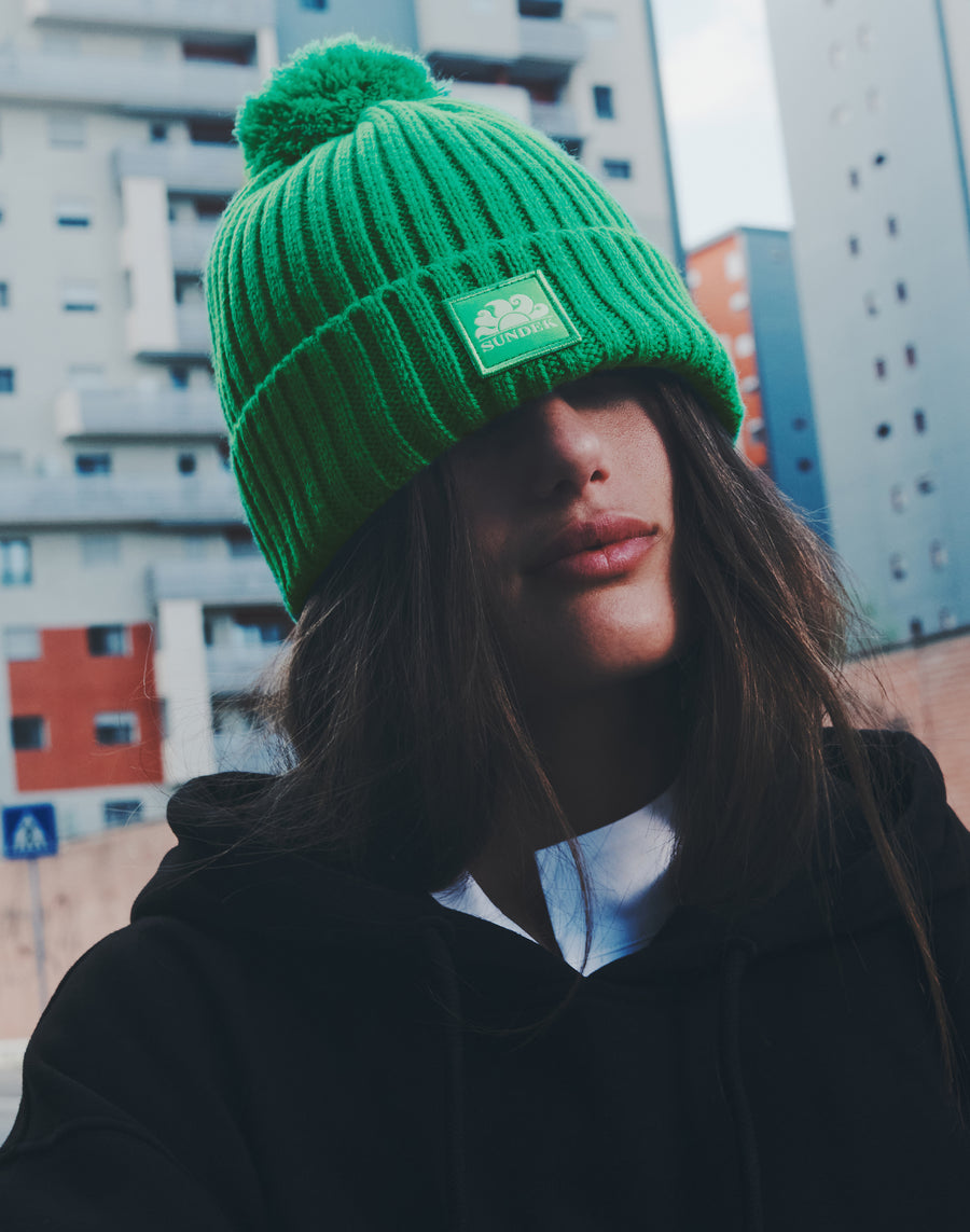 Un fil très doux pour ce bonnet polyvalent à l'esprit sportif raffiné avec pompon