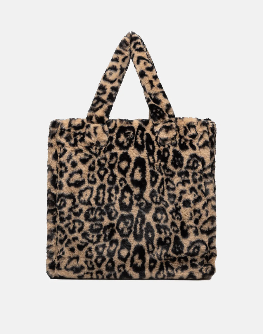 Grand et spacieux, ce tote bag en fourrure écologique avec imprimé léopard est sur le point de devenir l'indispensable de la saison.
