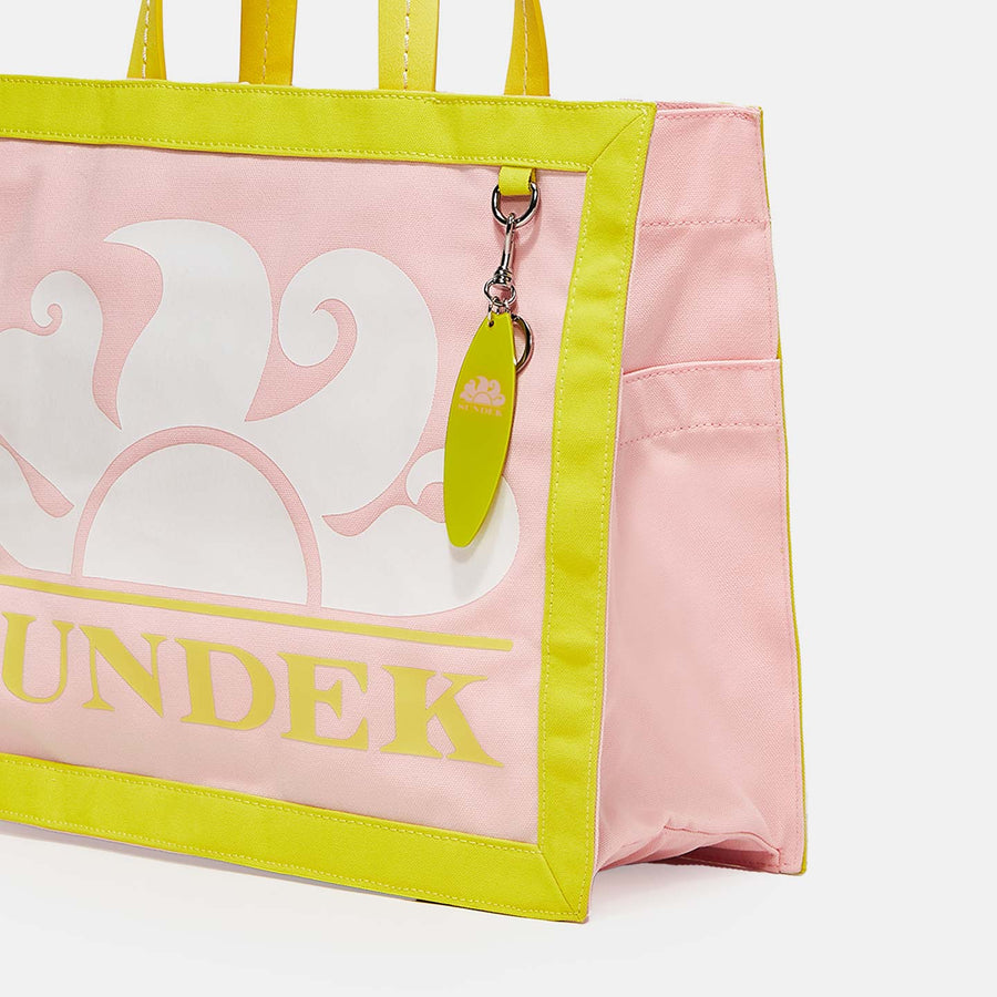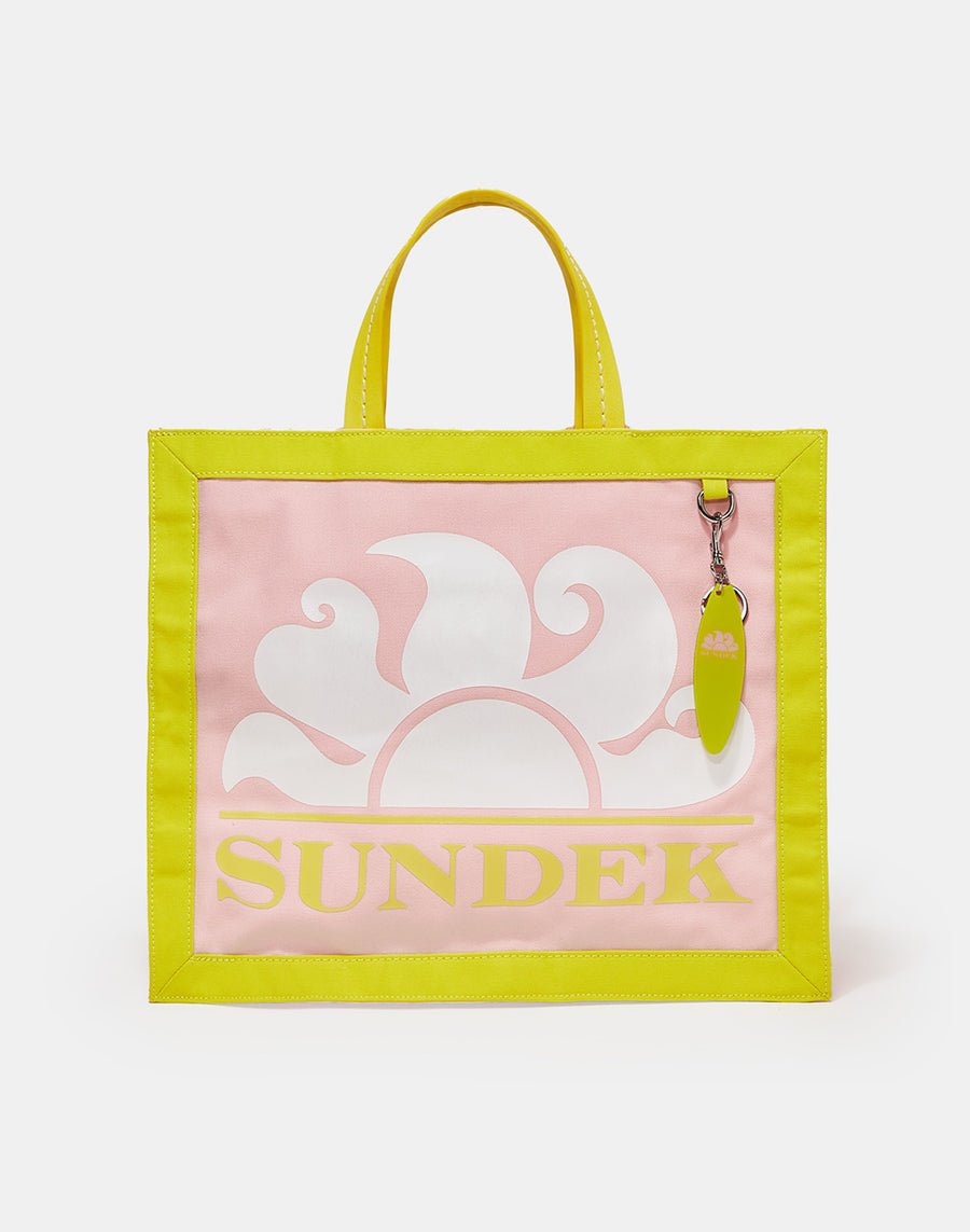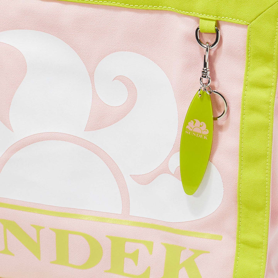 Sac à main de plage en toile avec logo imprimé. Grand et spacieux avec poche intérieure et fermeture éclair refermable. Charm avec la forme caractéristique d'une planche de surf