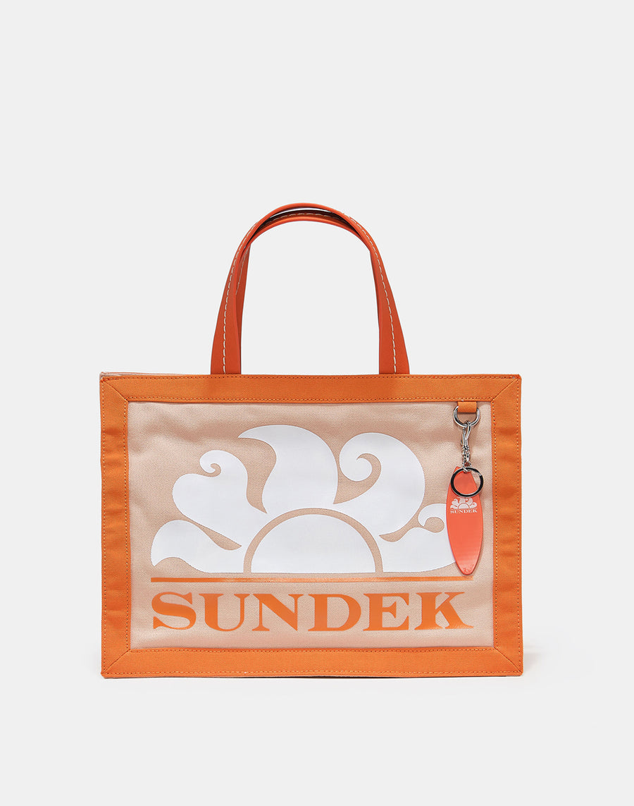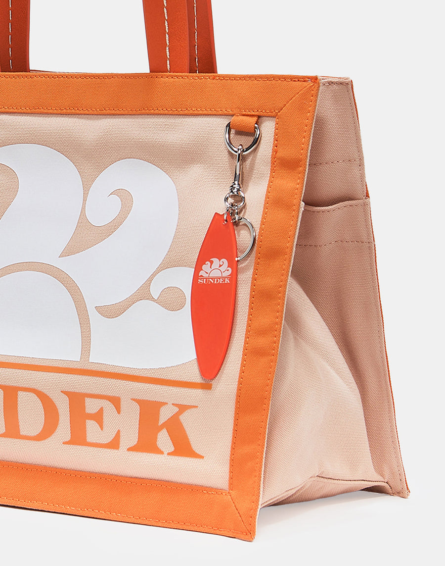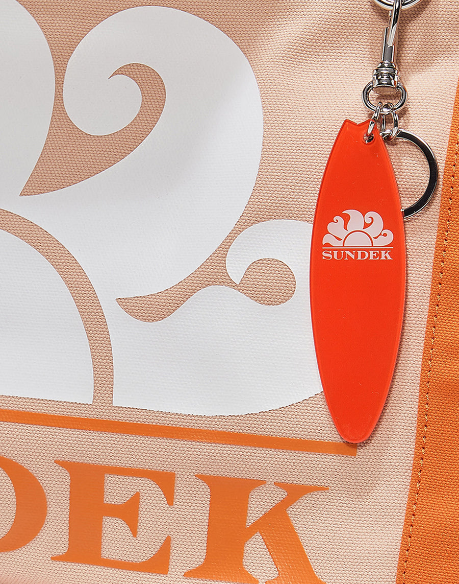 Sac à main moyen en toile avec logo Sundek imprimé. Charm avec la forme caractéristique d'une planche de surf