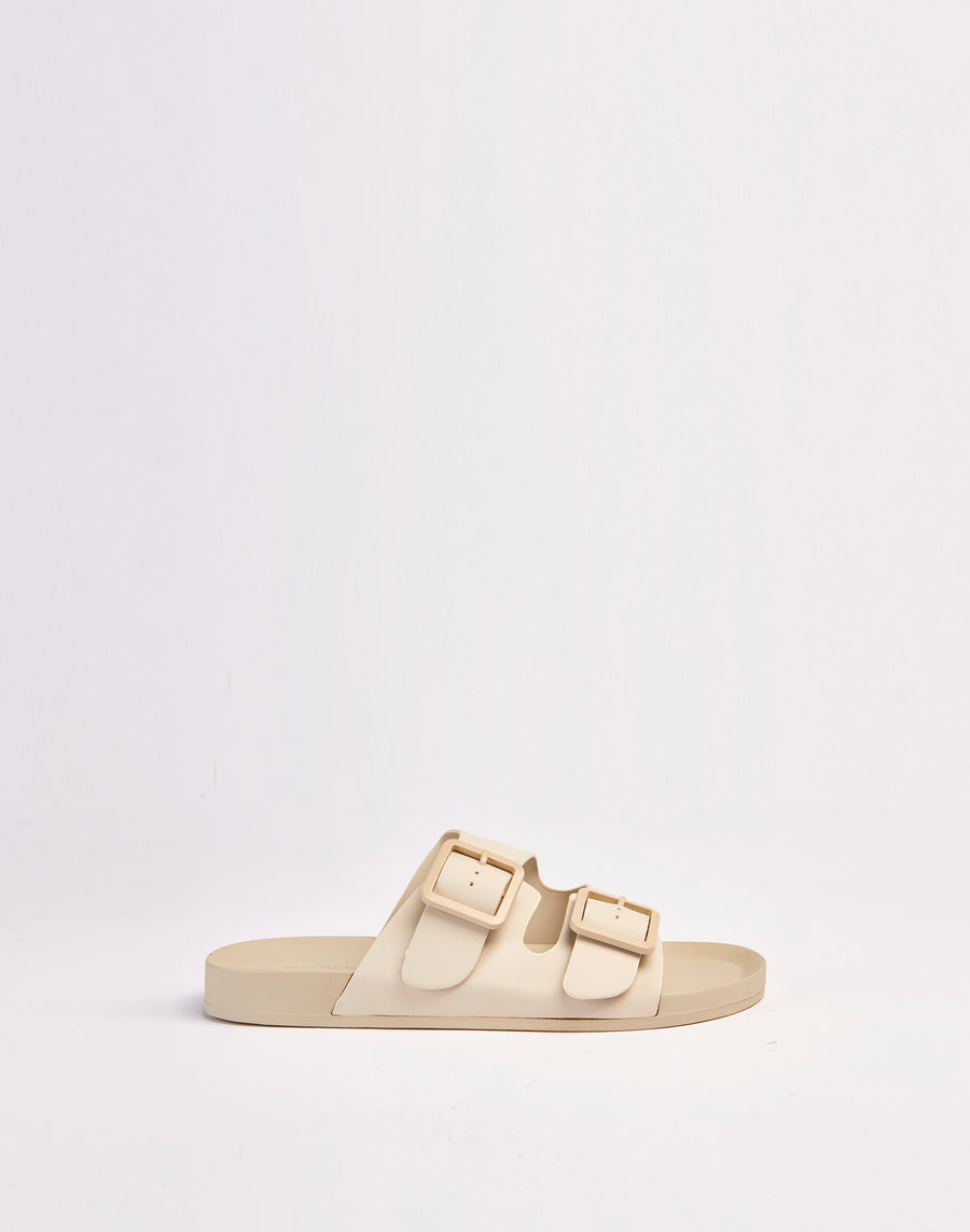 Sandale en caoutchouc avec deux brides réglables. Se combine facilement avec tous les types de looks, c'est le must de tes vacances.