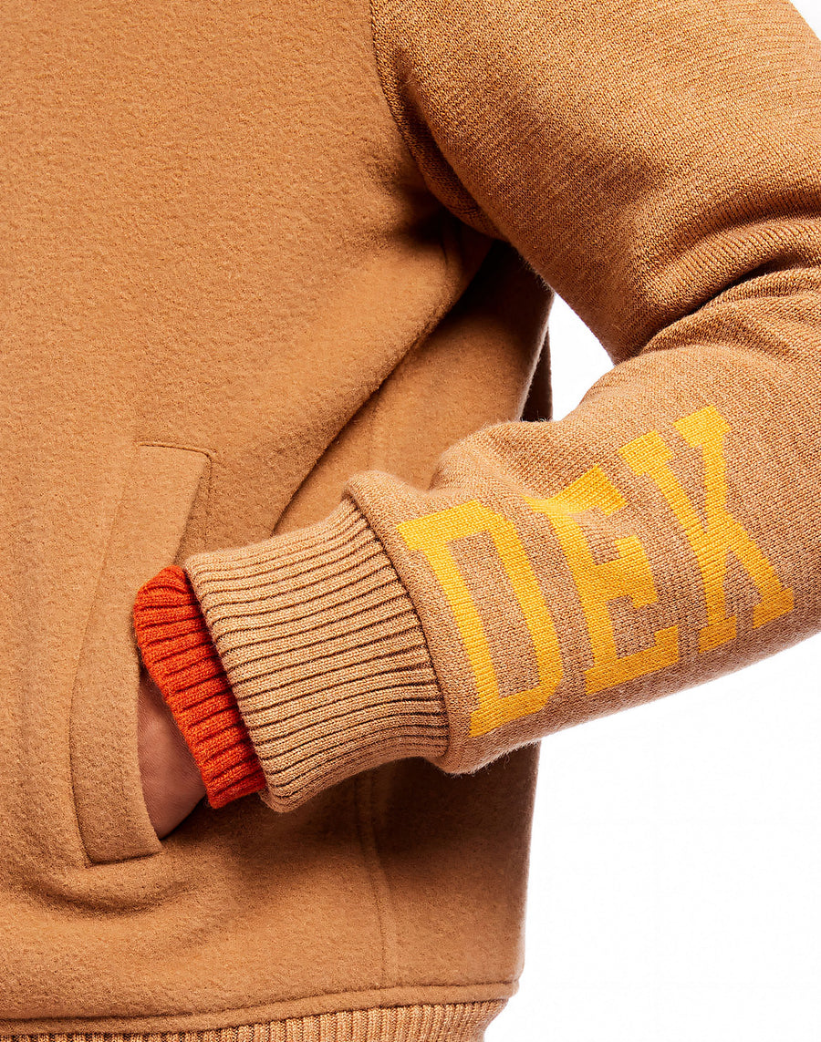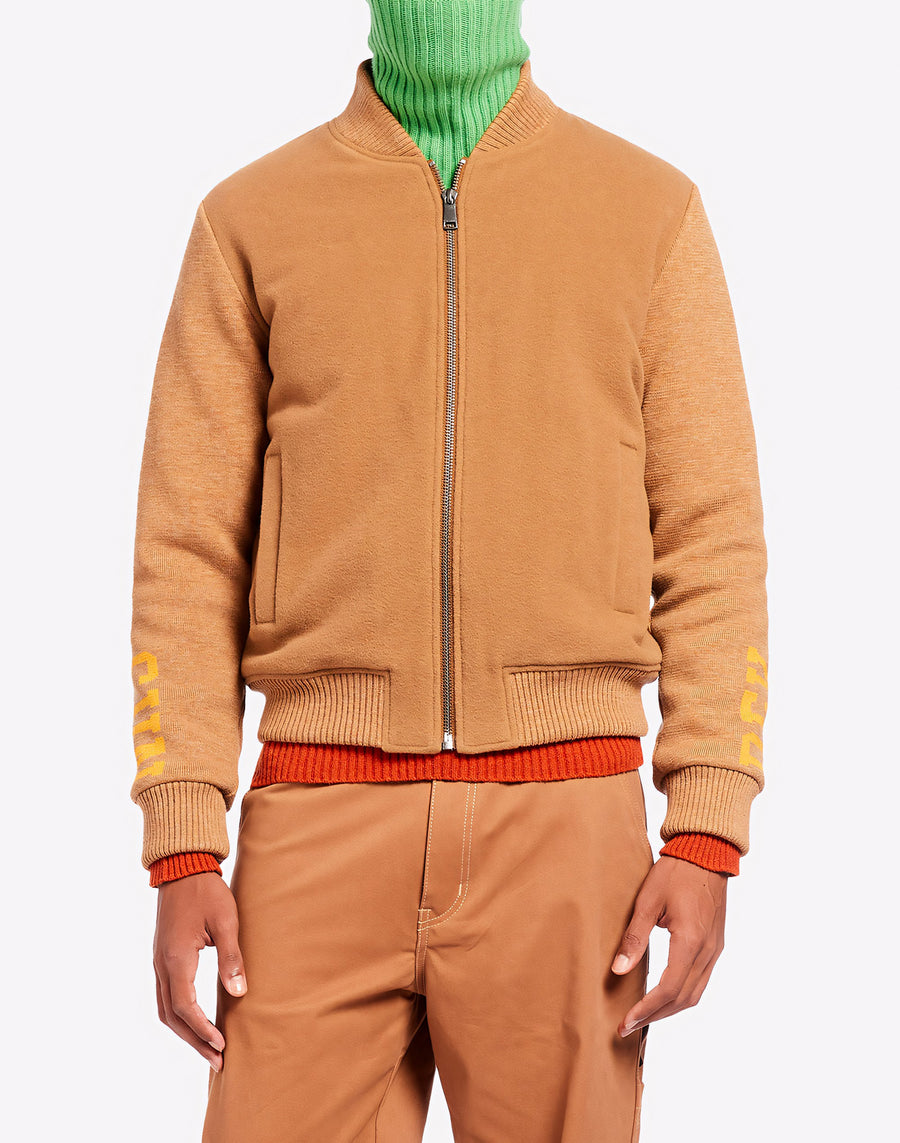 Design essentiel et sportif pour la veste bomber en laine avec fermeture éclair et logo sur les manches.