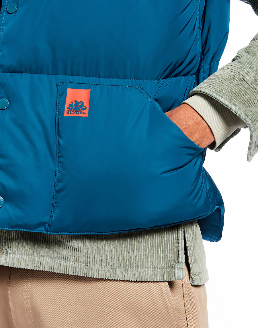 Ajoute une touche de couleur à ta garde-robe automne-hiver avec ce gilet matelassé au rembourrage écologique et performant