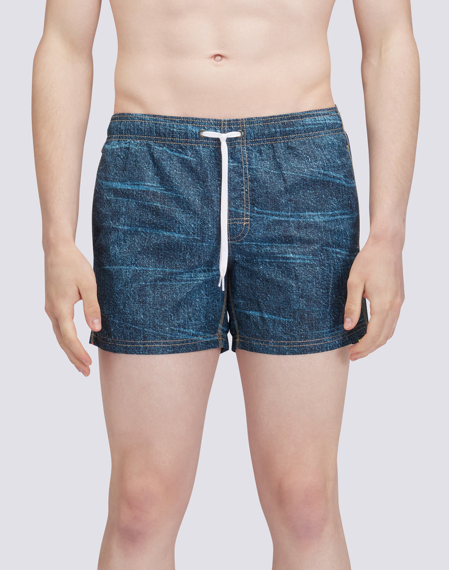 MAILLOT DE BAIN COURT TAILLE ÉLASTIQUE TAFFETA ICONIQUE GOLDENWAVE AVEC IMPRESSION DENIM