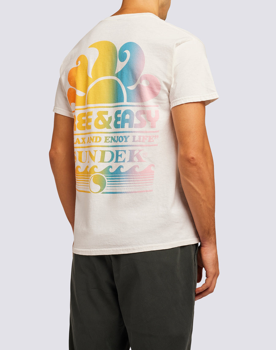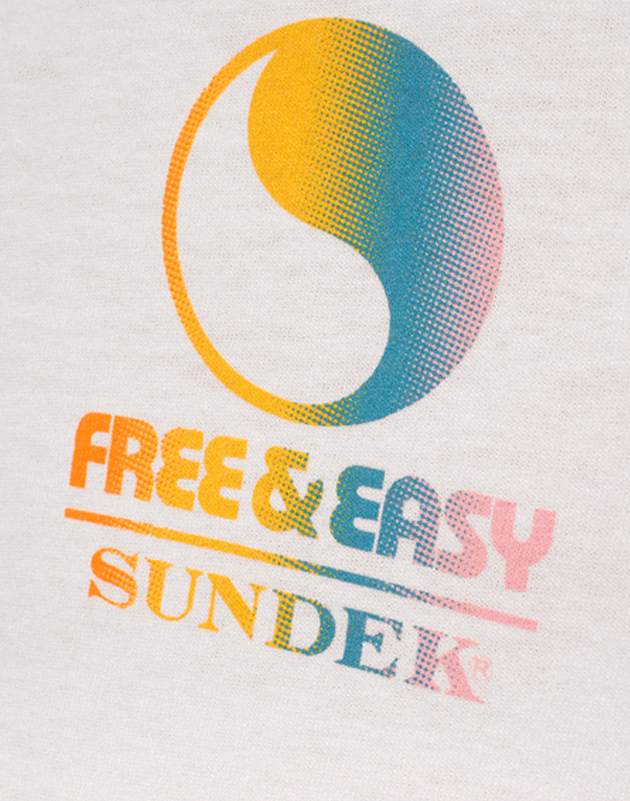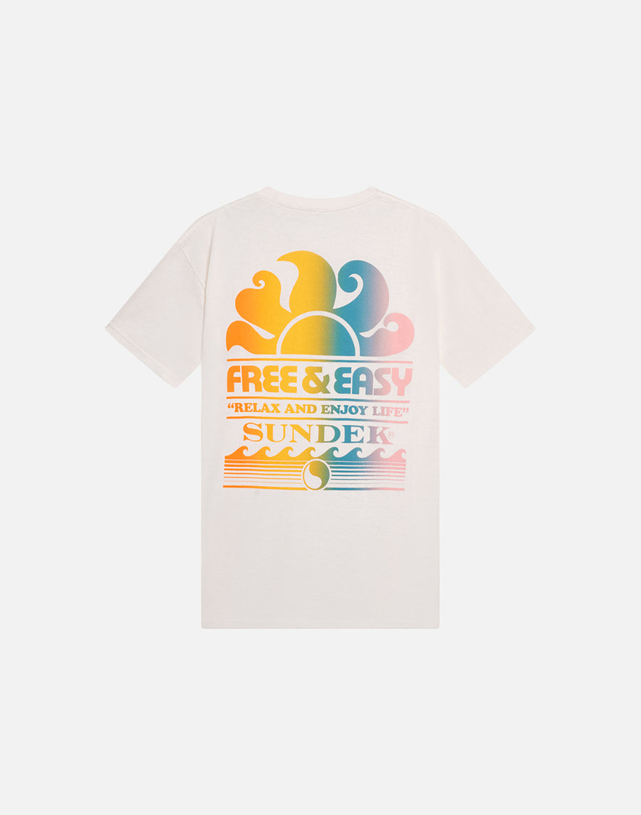 Découvrez la collaboration entre Free&Easy et Sundek avec ce t-shirt confortable en coton, caractérisé par un imprimé vif et coloré. Portez ce vêtement et sentez-vous immédiatement en vacances !