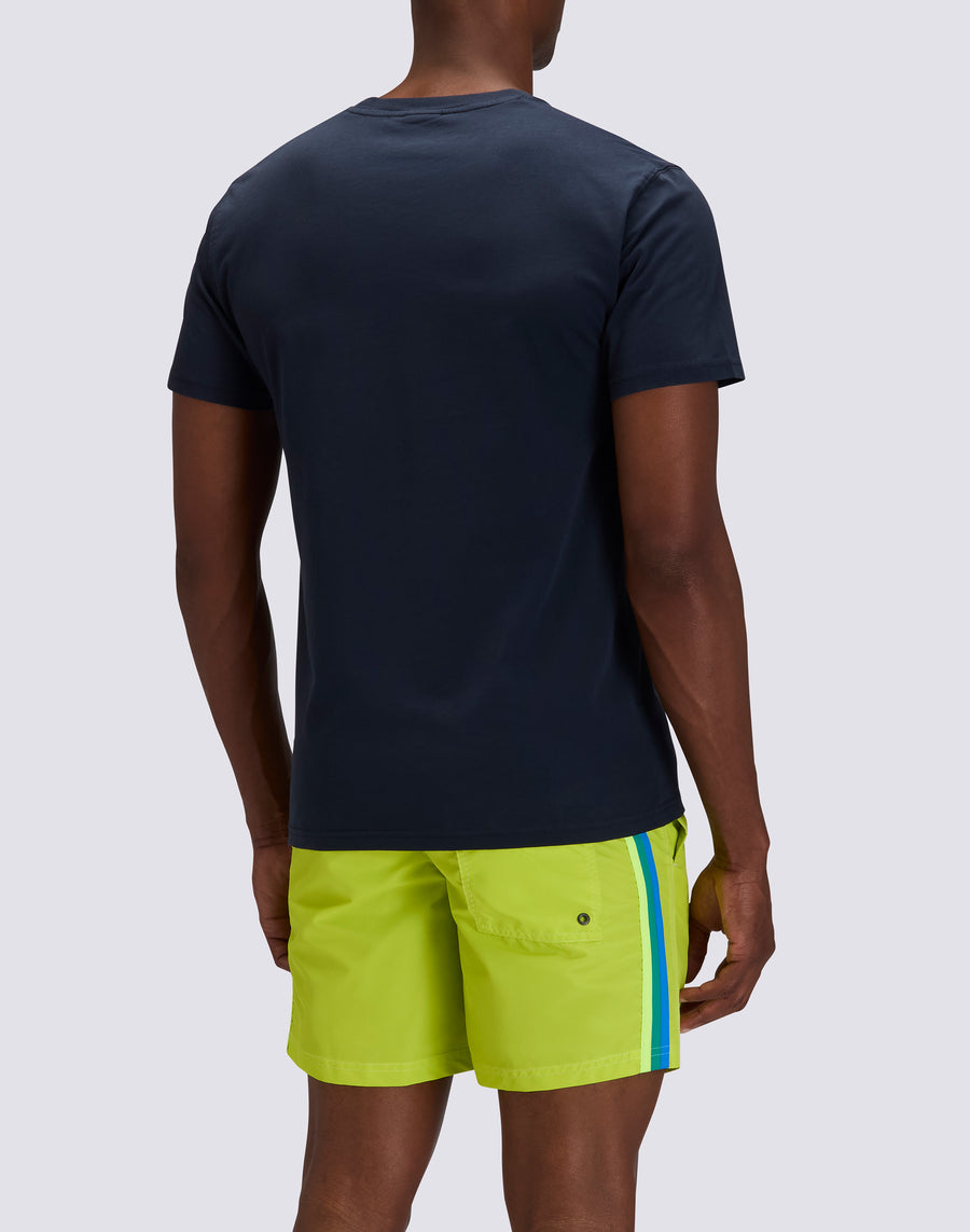 T-shirt homme à manches courtes et col rond, orné d'un logo Sundek imprimé verticalement sur le côté gauche. Coupe classique. Un basique polyvalent.