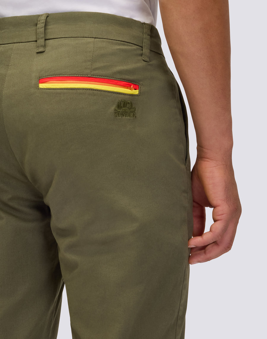 Pantalon chino long pour homme en sergé de coton extensible. Conçu pour vous offrir style et confort à la fois.