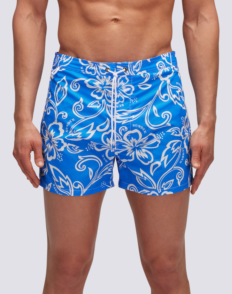 MAILLOT DE BAIN COURT TAILLE FIXE TAFFETA ICONIQUE IMPRIMÉ HIBISCUS SK23
