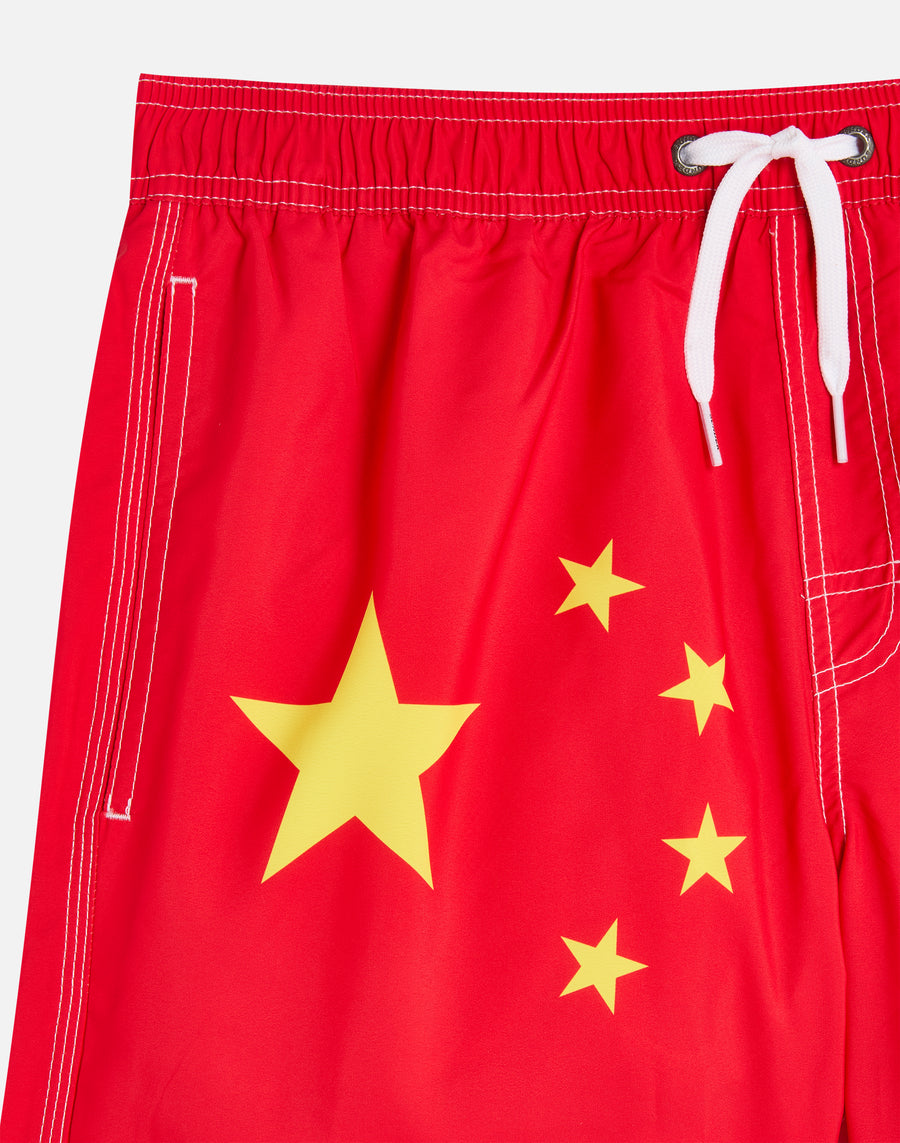 MAILLOT DE BAIN TAILLE COURTE ÉLASTIQUE POLYESTER RECYCLÉ REPREVE® DRAPEAU CHINOIS