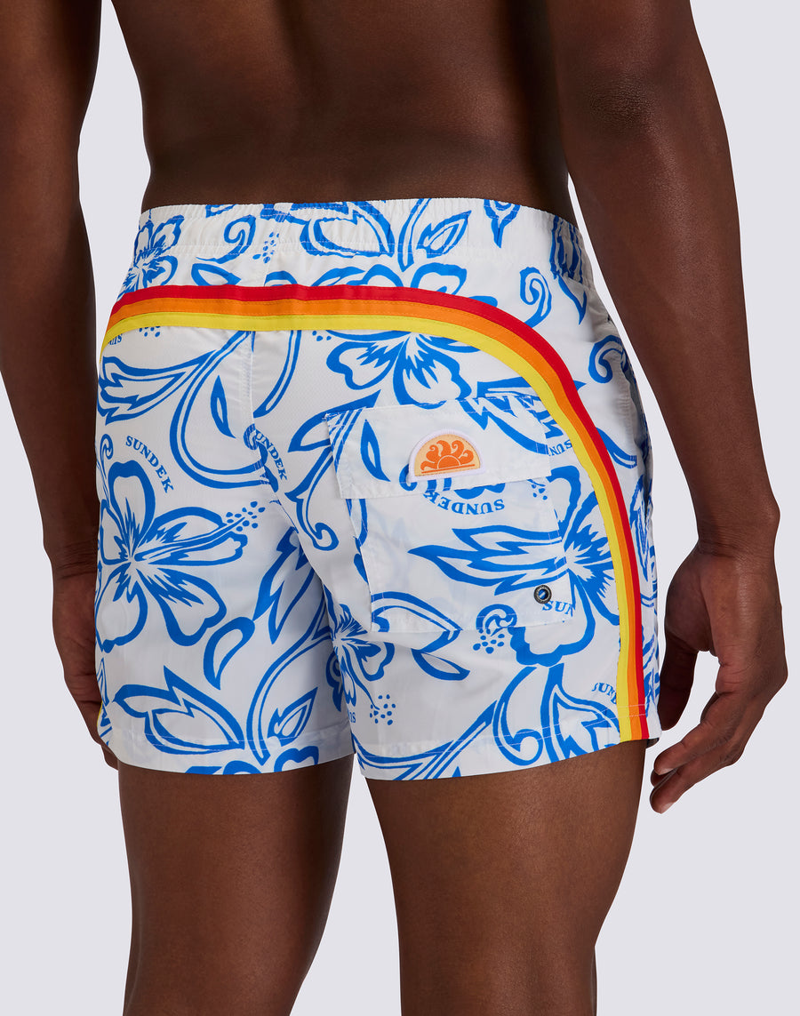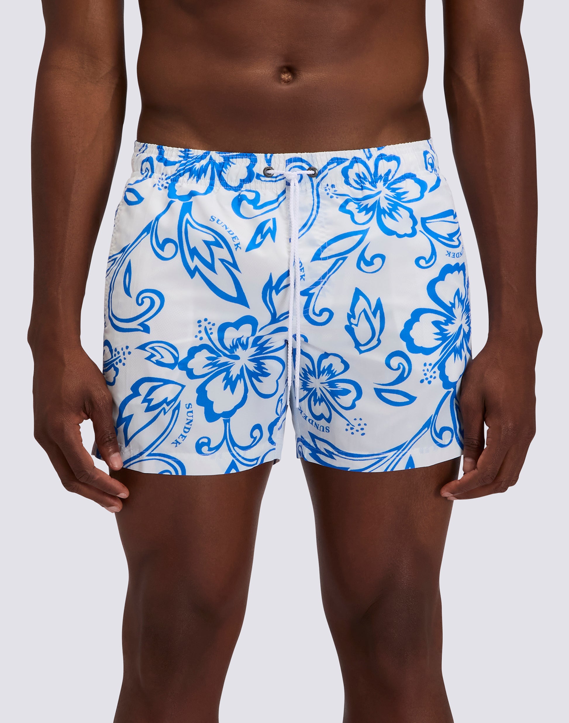 MAILLOT DE BAIN COURT POUR HOMME AVEC TAILLE ÉLASTIQUE ET IMPRIMÉ HIBISCUS D'ARCHIVES SK23