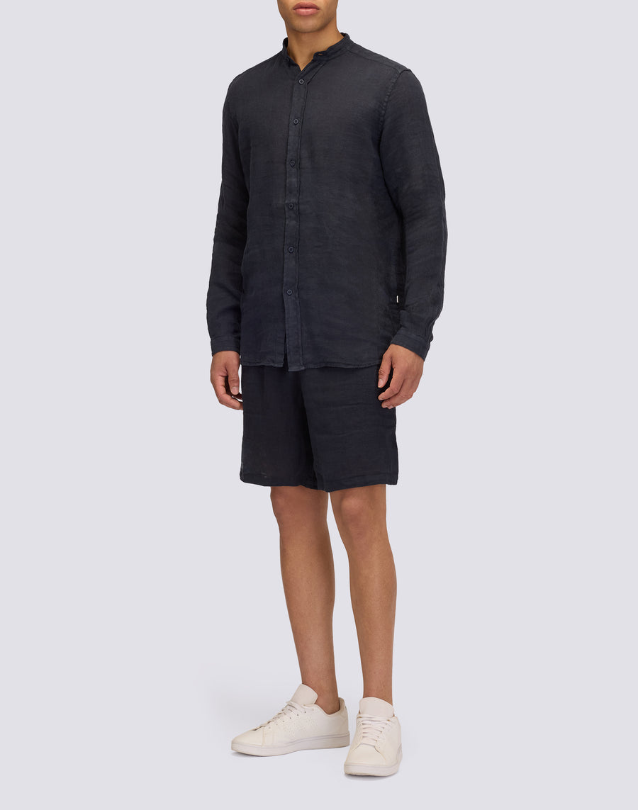 CHEMISE EN LIN TEINT EN PIÈCE AVEC COL MAO