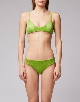 64% POLYAMIDE 36% ÉLASTHANNE Tissu lurex brillant, confortable et avec doublure qui garantit un contact doux avec la peau.