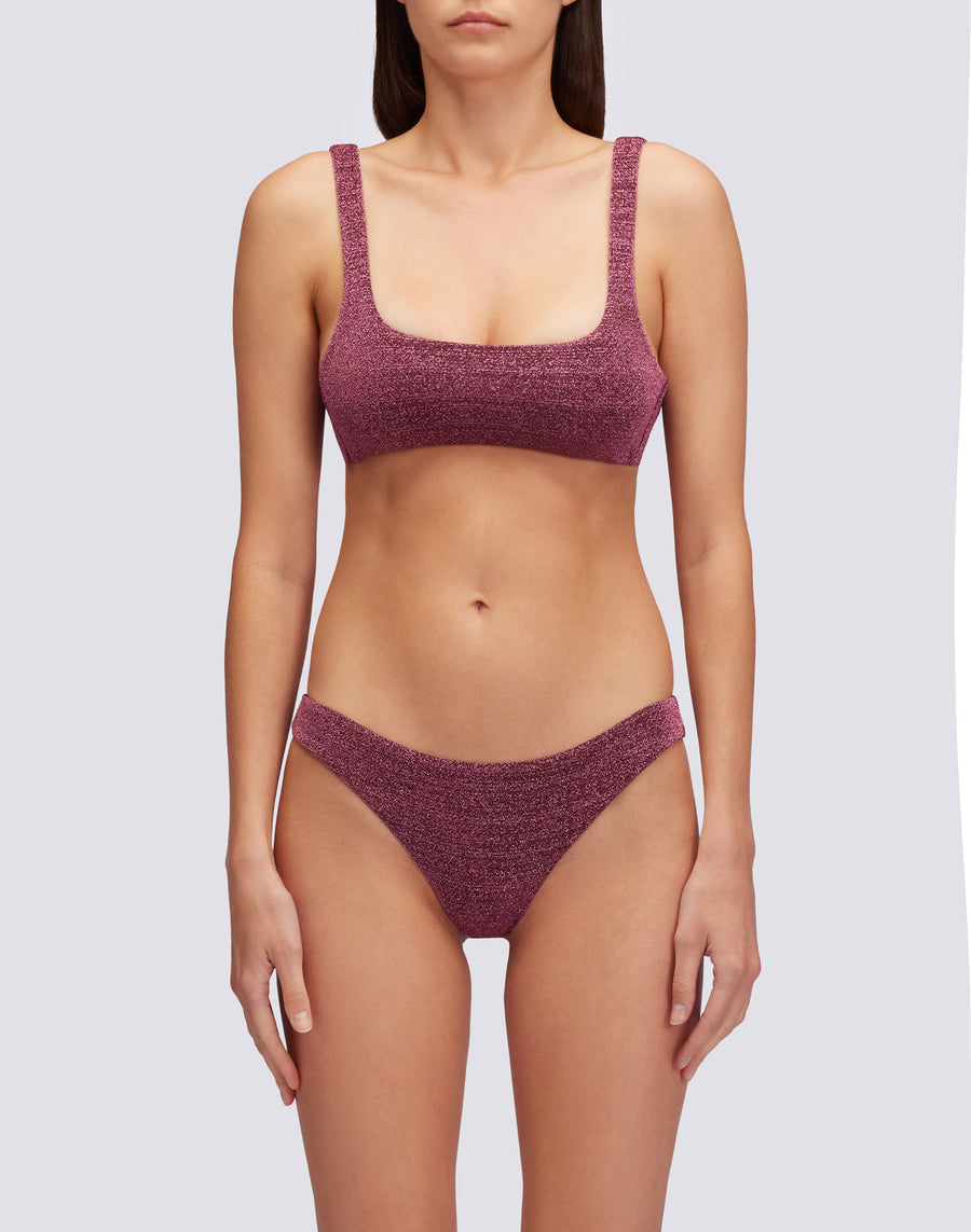 64 % POLYESTER 36 % ÉLASTHANNE Tissu en lurex brillant, confortable et avec une doublure qui garantit un contact doux avec la peau.