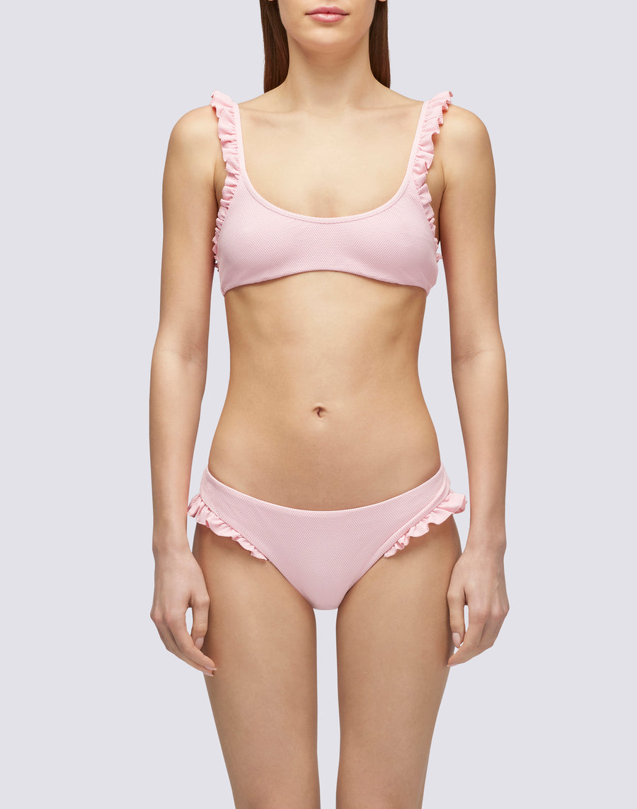 La brassière à volants est un incontournable de votre garde-robe estivale. Fabriqué en tissu piqué doux, confortable et tendance, ce haut de bikini ajoutera une touche d'élégance à vos looks de plage. A combiner avec la culotte coordonnée.