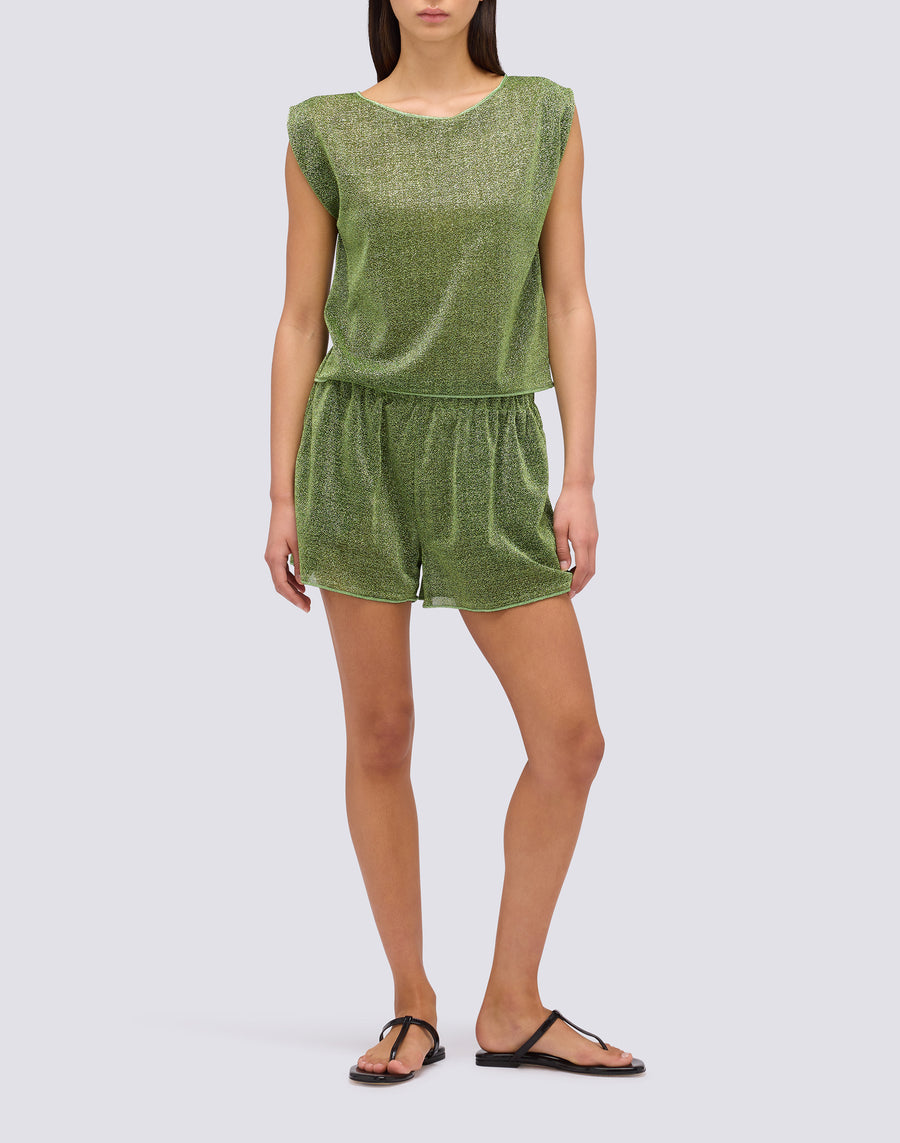 Pétillant, confortable et parfait pour une journée à la plage, ce short en lurex pour femme est l'accessoire parfait à associer à votre bikini. Apportez une touche de lumière et de glamour à votre été !