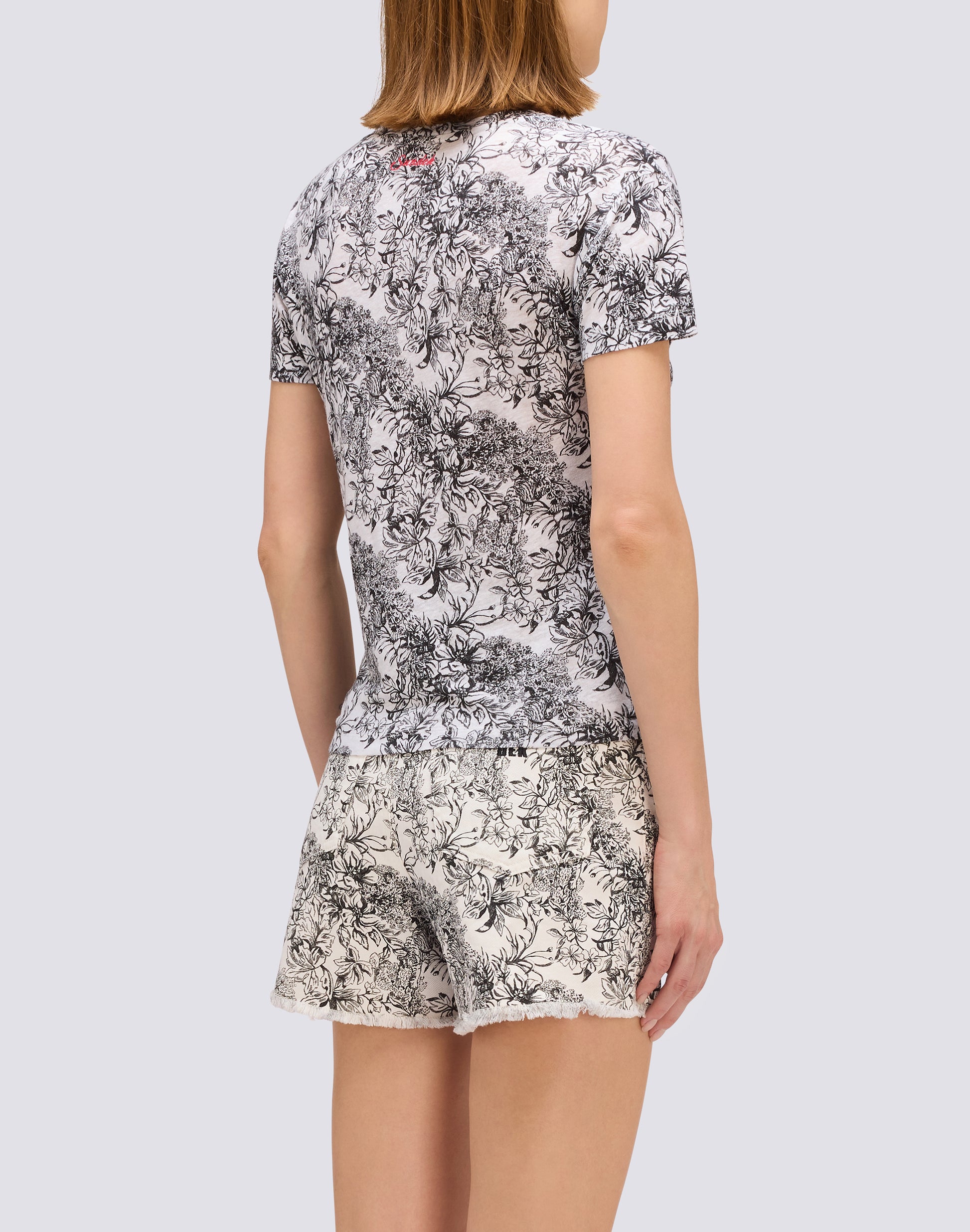 Le t-shirt d'été femme Fleur De Joie à manches courtes en lin à imprimé floral est léger et parfait pour l'été. Fabriqué en lin doux, il garantit une sensation de fraîcheur et de confort lors des journées les plus chaudes. L'imprimé floral ajoute une touche de style à votre tenue d'été.
