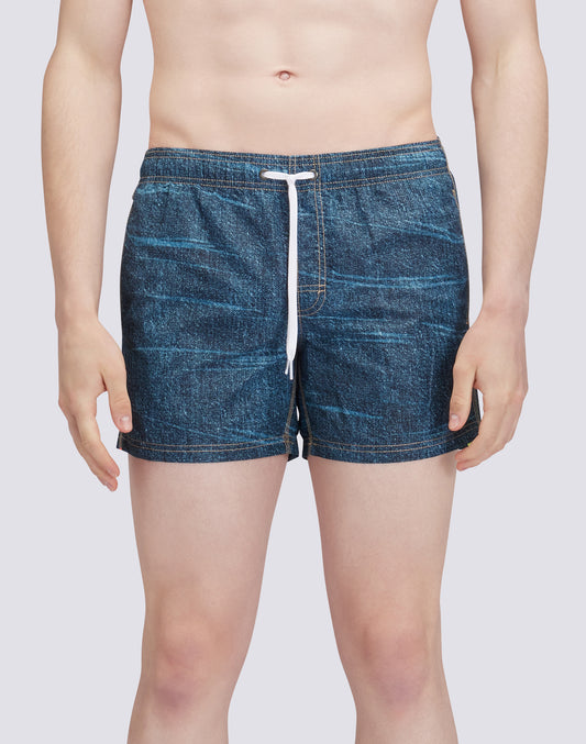 COSTUME DA BAGNO CORTO VITA ELASTICATA ICONIC TAFFETA GOLDENWAVE STAMPA DENIM