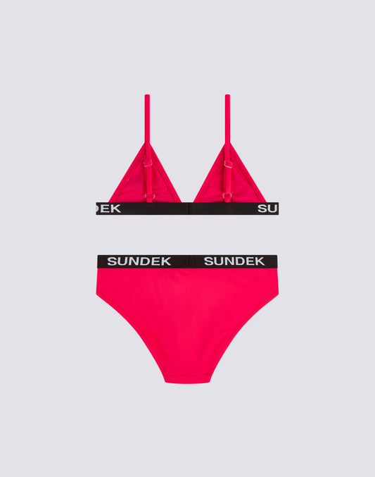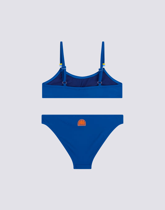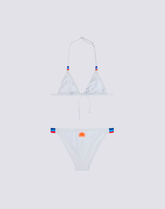 BIKINI BAMBINA TOP A TRIANGOLO E SLIP FISSO CON ELASTICO LOGO