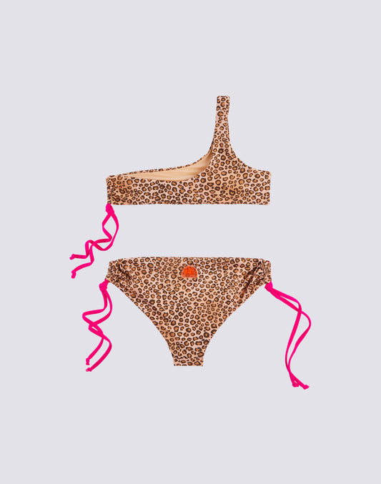 MINI MAGNOLIA BIKINI CON TOP A TRIANGOLO E SLIP CON FIOCCHI STAMPA LEO