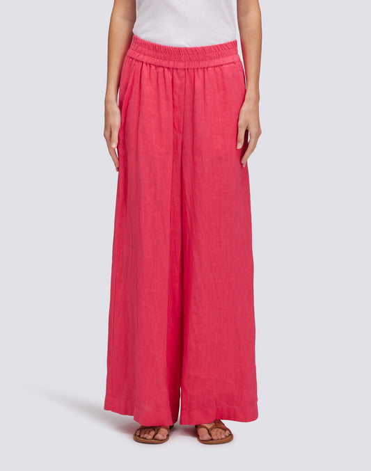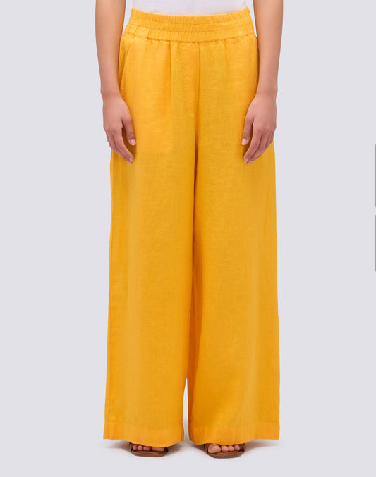 PANTALONI PALAZZO LUNGHI IN LINO TINTO CAPO