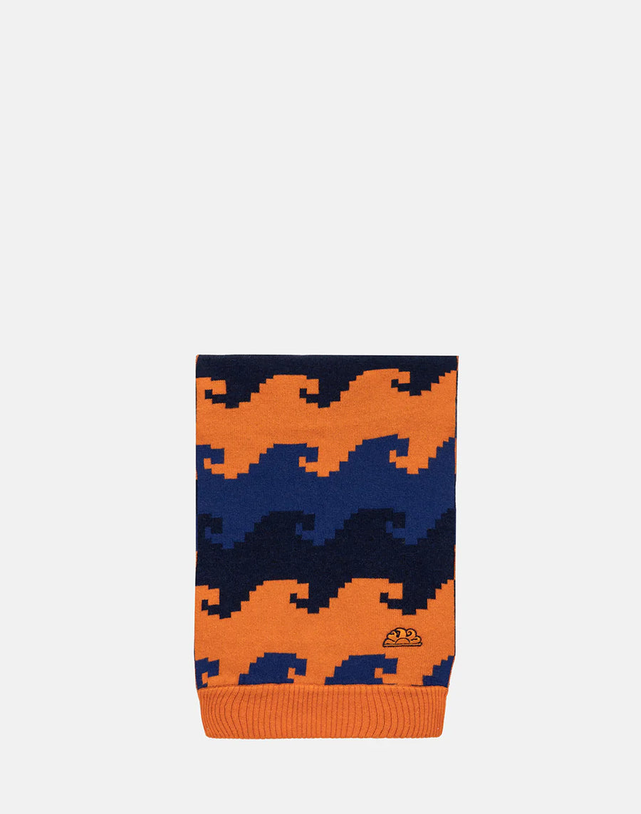 Calore e colore per questa sciarpa motivo perfetta per tutta la stagione. Dai un tocco di carattere al look dei tuoi bambini con questa sciarpa in maglia con motivo onde da abbinare con stile a piumini e cappotti.