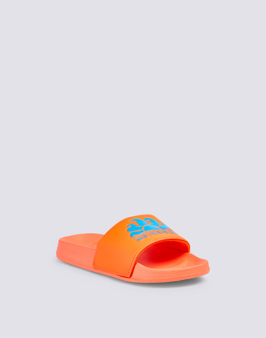 Ciabatte a fascia Costa da bambino, gommate e dalla calzata confortevole. Si caratterizzano per la stampa del logo Sundek sulla fascia, a contrasto, e per l'altezza della suola di 2,5 cm.