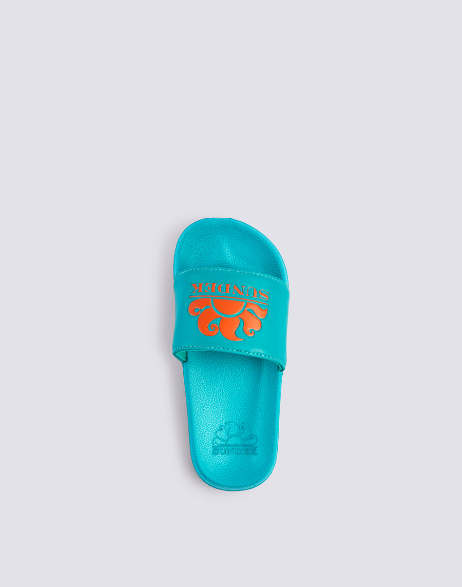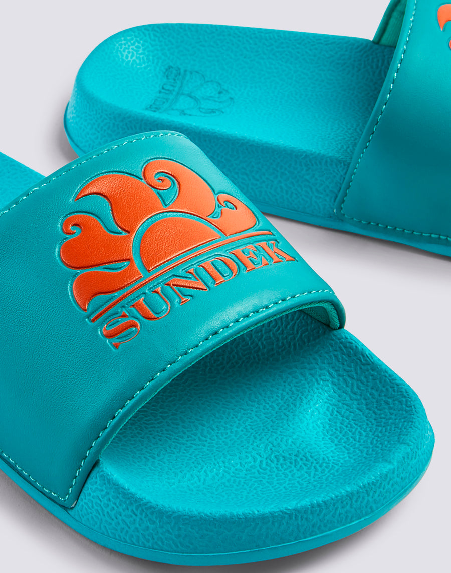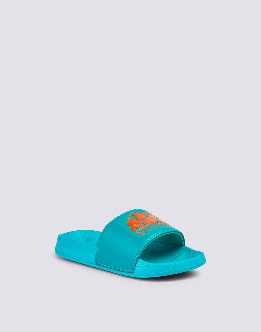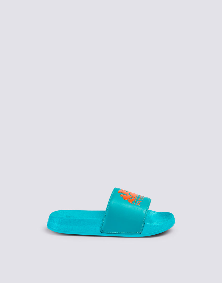 Ciabatte a fascia Costa da bambino, gommate e dalla calzata confortevole. Si caratterizzano per la stampa del logo Sundek sulla fascia, a contrasto, e per l'altezza della suola di 2,5 cm.