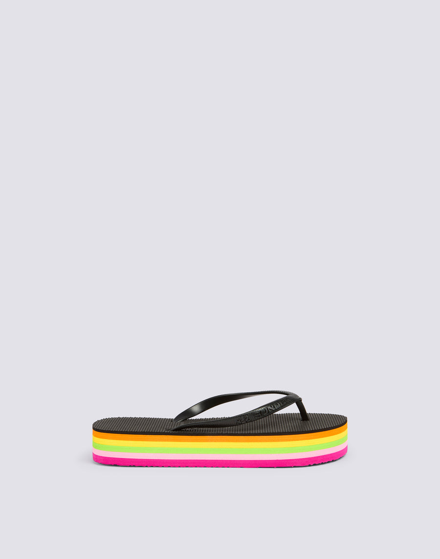 Se non rinunci mai al platform, sceglilo anche per le tue infradito da mare: attuali, leggere, comode e con il dettaglio multicolor che completa la suola extra. Altezza suola 4 cm.