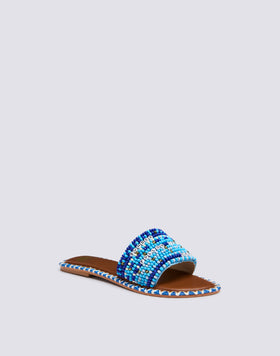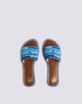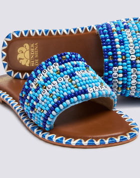 CIABATTA A FASCIA RICAMATA CON PERLINE CAPRI