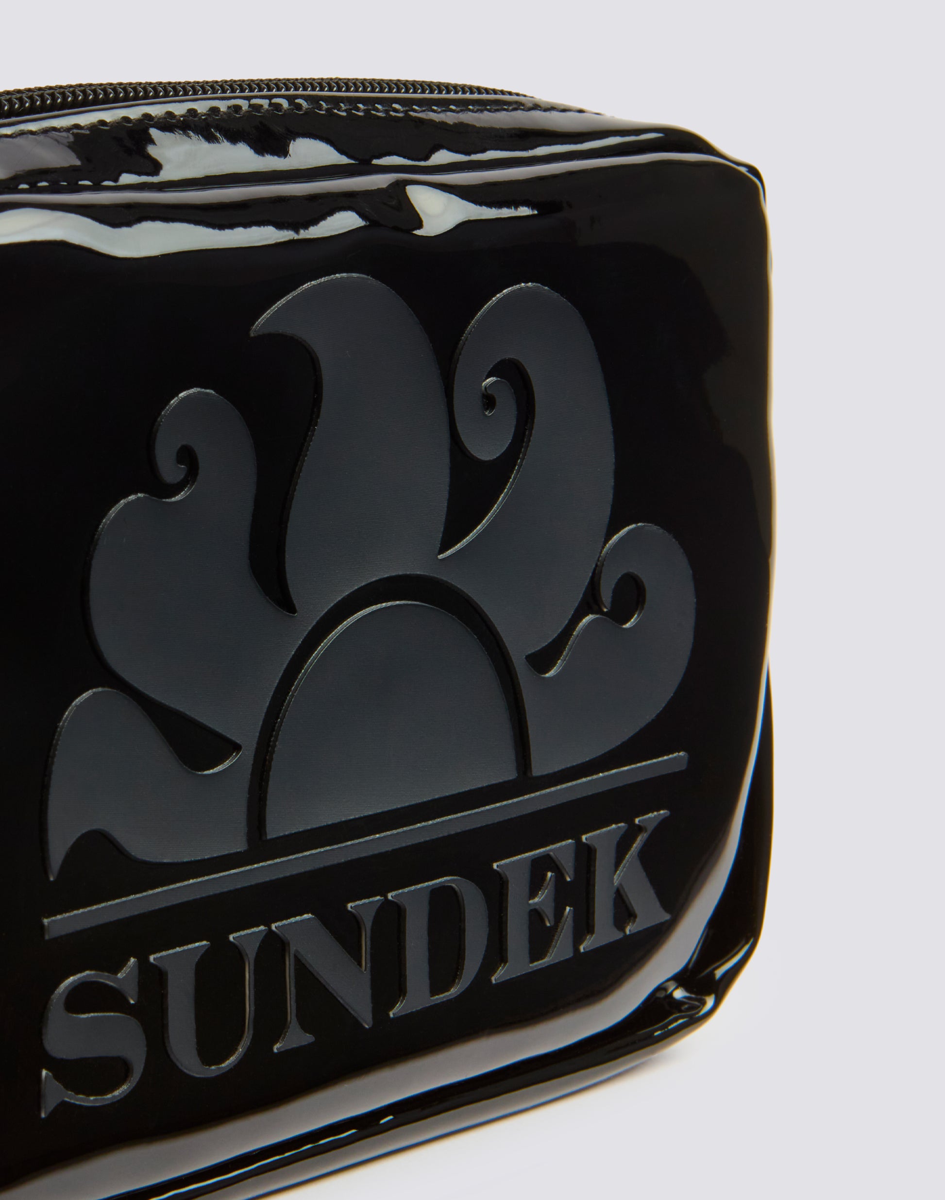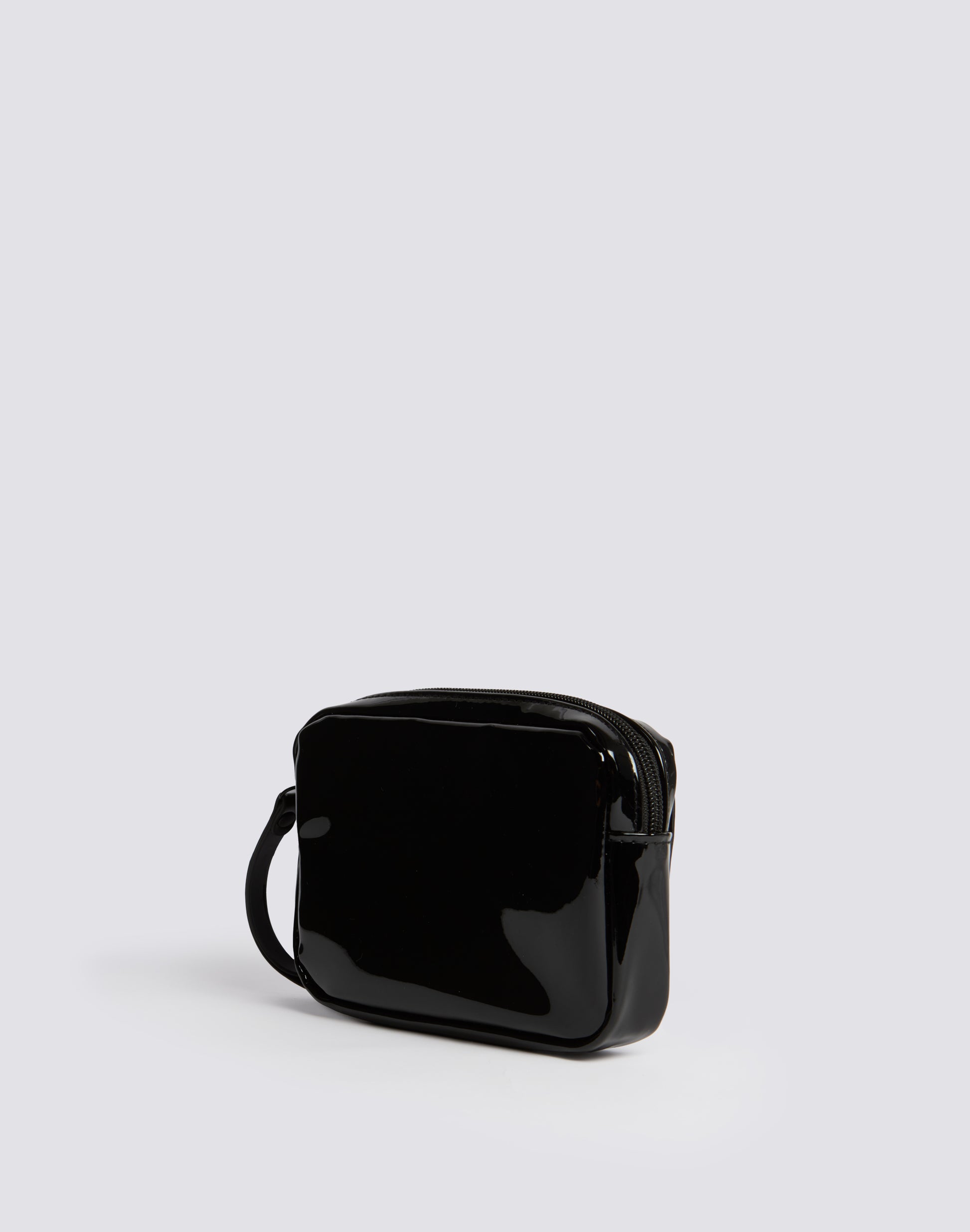 Boston pochette dalla texture shiny con zip e asola passamano.