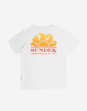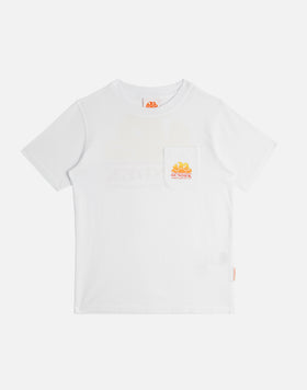 A scuola, nel tempo libero e in vacanza sarà la T-shirt che personalizzerà i look del tuo piccolo. Il logo sfumato sul retro è protagonista di questo modello con taschino sul petto. Facile da abbinare e confortevole da indossare.