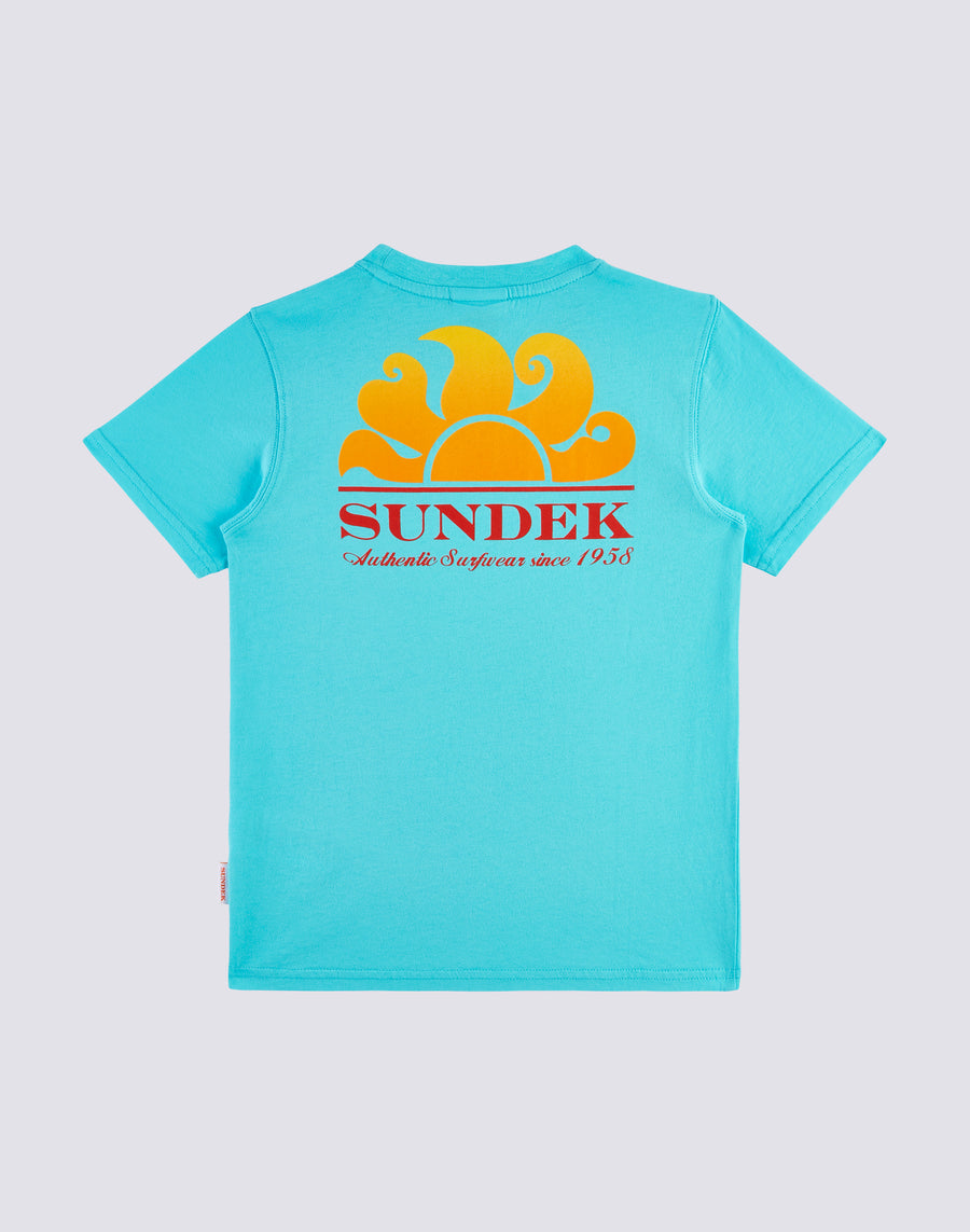 A scuola, nel tempo libero e in vacanza sarà la T-shirt che personalizzerà i look del tuo piccolo. Il logo sfumato sul retro è protagonista di questo modello con taschino sul petto. Facile da abbinare e confortevole da indossare.