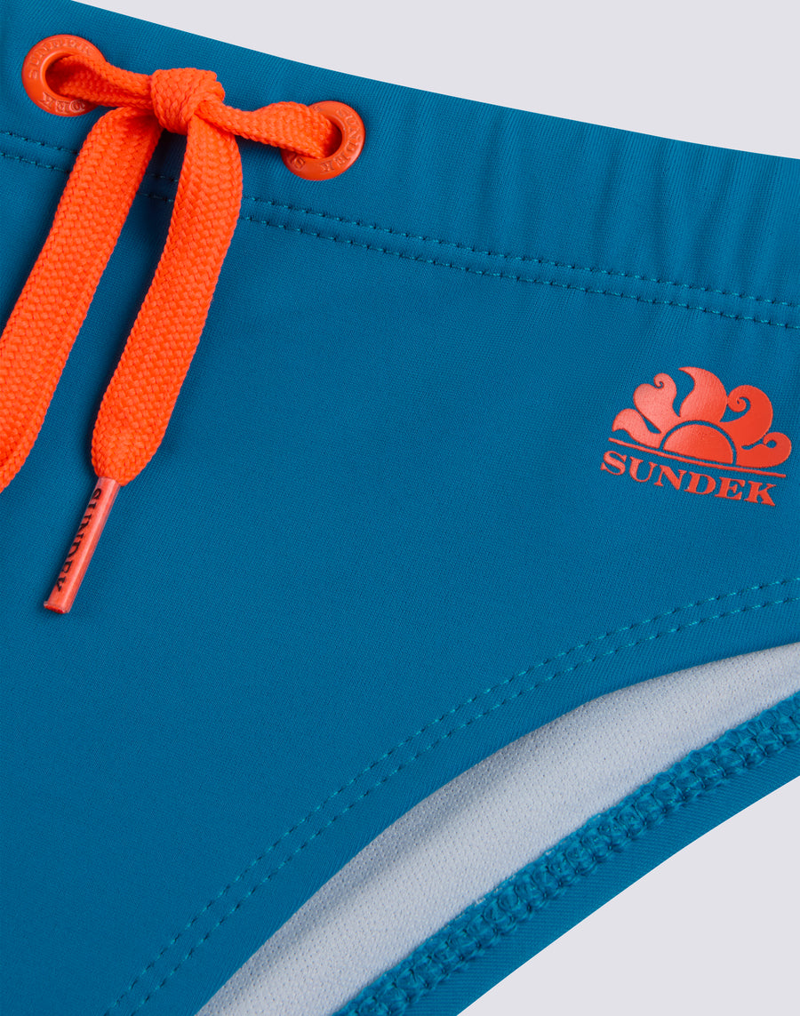 Immergiti nei colori dell'arcobaleno. Costume mare slip bambino in nylon Econyl rigenerato.