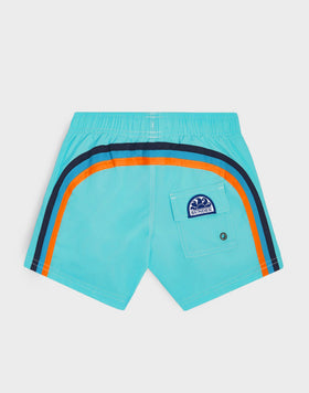 Colore intenso e tessuto iper-confortevole ad asciugatura rapida per questi pantaloncini mare bimbo. Un modello che accompagnerà il tuo bimbo nelle sue mille attività in vacanza, perfetto per muoversi e giocare in piena libertà. è realizzato nel nostro tessuto storico nylon-taffetà e costruito con cuciture a tre aghi che lo rendono resistente nel tempo. Da mettere in valigia, anno dopo anno.