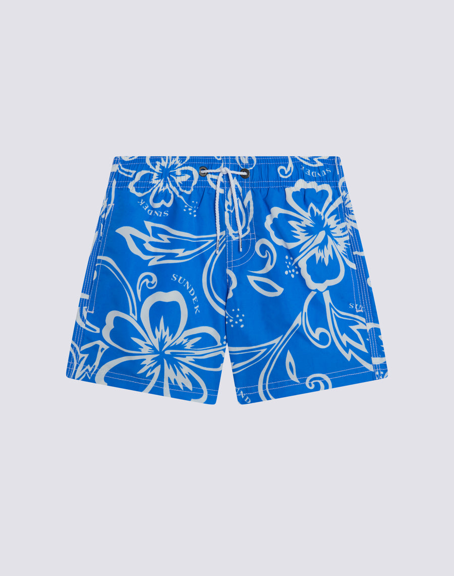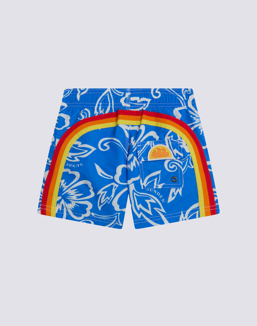 COSTUME DA BAGNO CORTO BAMBINO CON VITA ELASTICATA STAMPA ARCHIVE HIBISCUS SK23