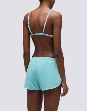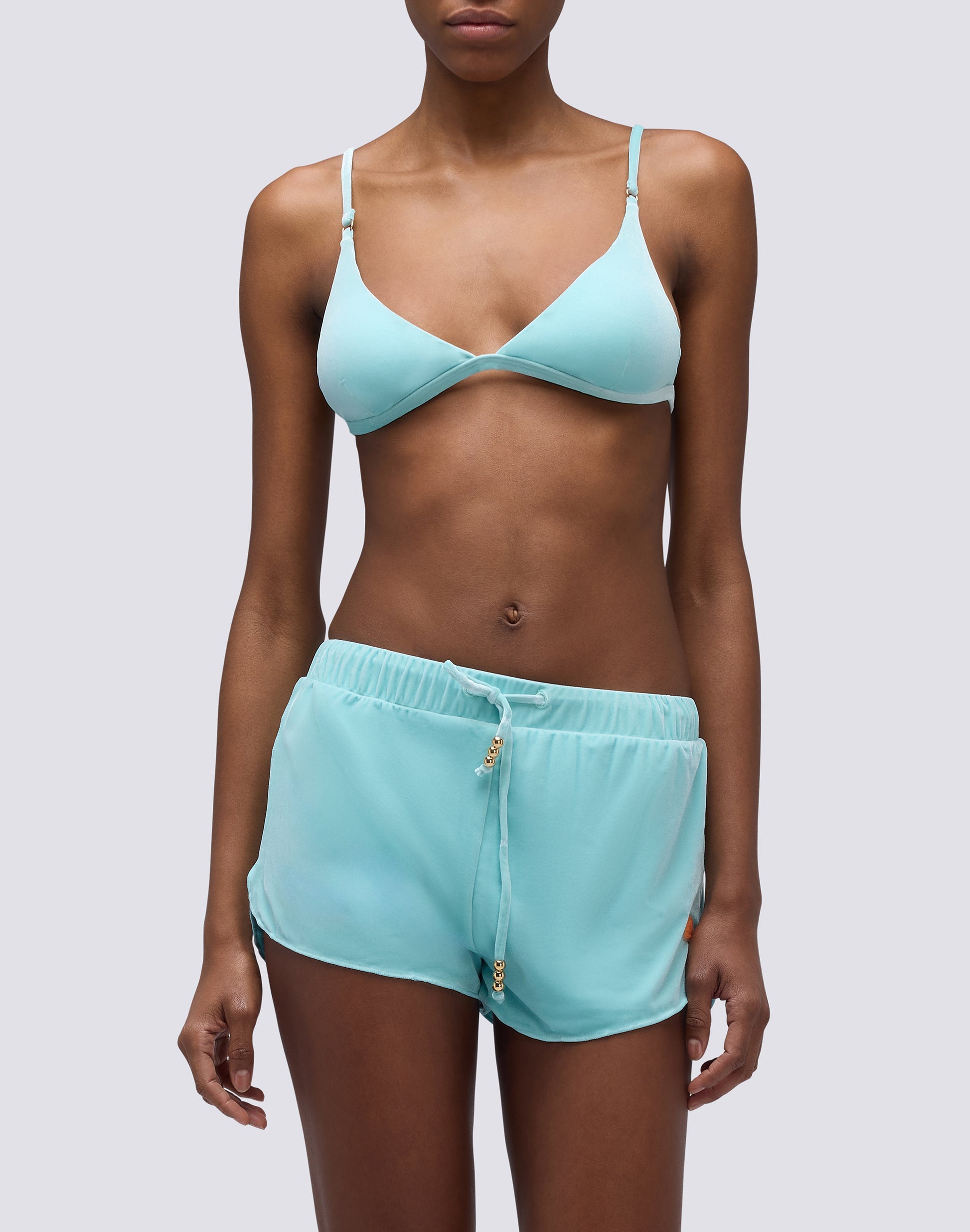 Pantaloncini da mare donna corti in velluto, facili da abbinare al costume in coordinato per rendere perfetta ogni giornata di mare.
