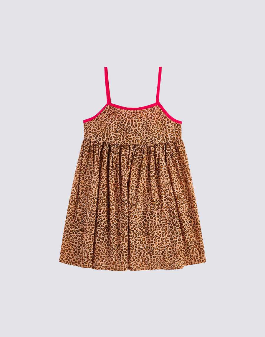 ABITO DA BAMBINA CON STAMPA LEOPARDATA E SPALLINE A CONTRASTO