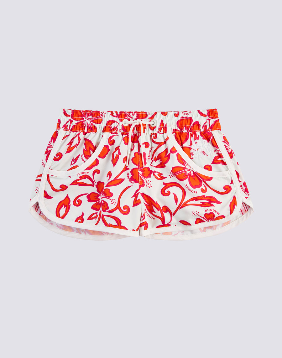 PANTALONCINO MARE CORTO BAMBINA MARGATE CON STAMPA HIBISCUS SK23