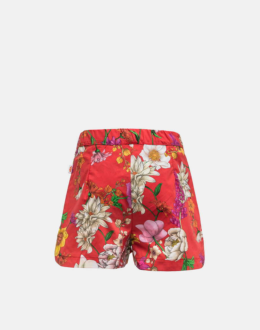 Popeline di cotone leggero e vita elasticata per questi shorts con la vivace stampa floreale Royal Flower: perfetti sopra il costume per scendere in spiaggia o per tutte le occasioni quotidiane.