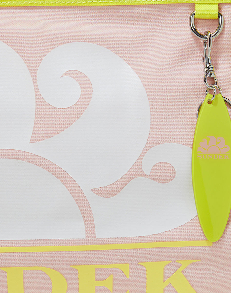 Borsa medium a mano in canvas con logo Sundek stampato. Charm con la caratteristica forma di tavola da surf