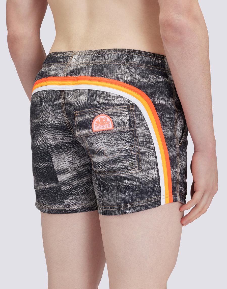 COSTUME DA BAGNO CORTO VITA ELASTICATA ICONIC TAFFETA GOLDENWAVE STAMPA DENIM