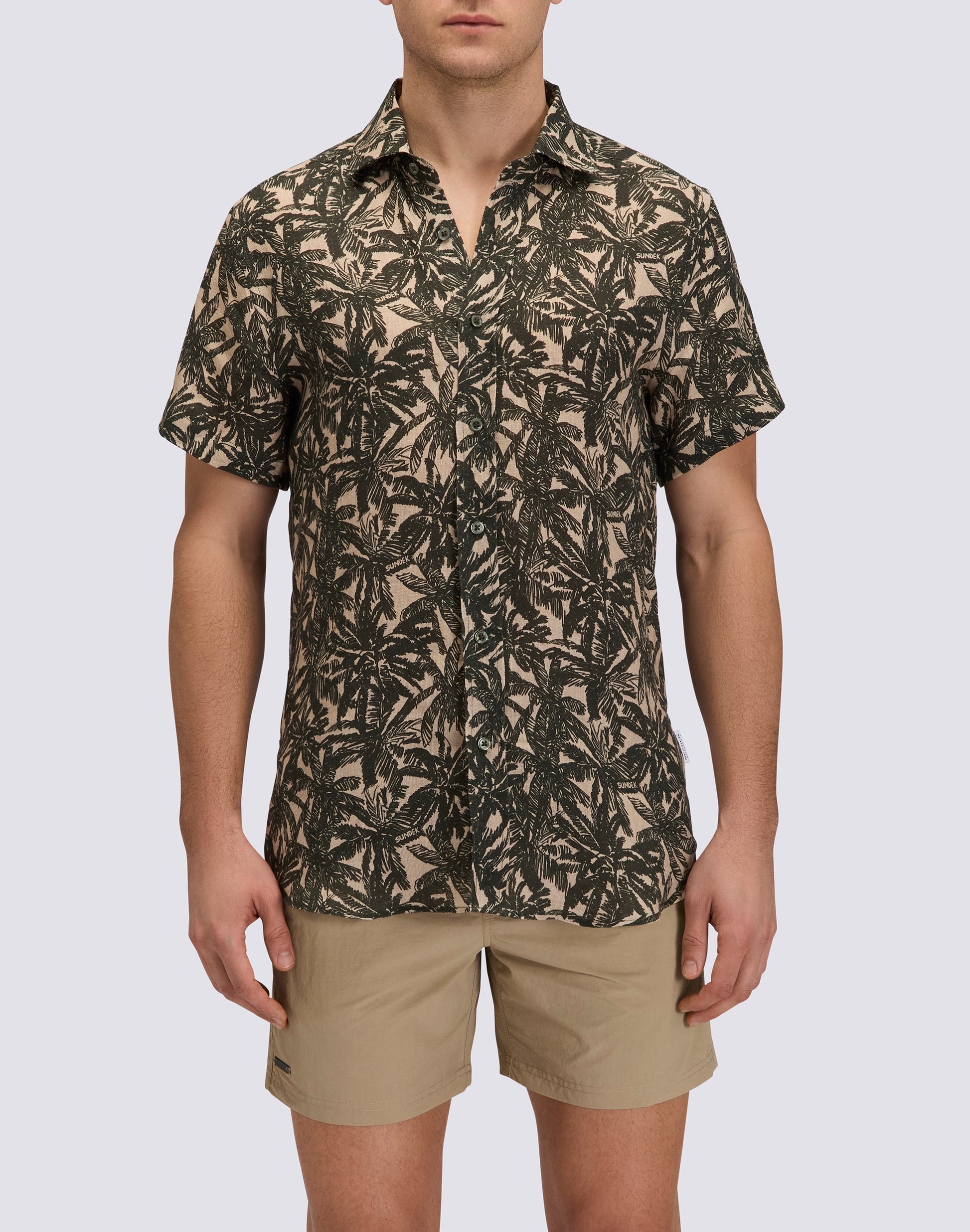 CAMICIA UOMO IN LINO A MEZZE MANICHE STAMPATA